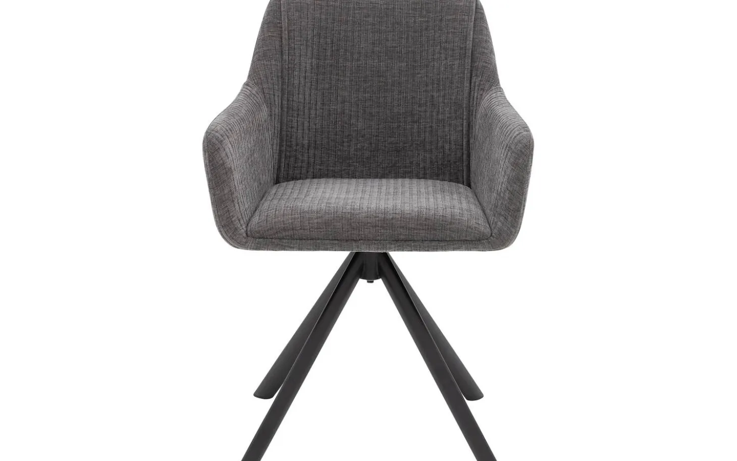 Stilvolle Details dieses grauen Esszimmerstuhls mit Armlehne