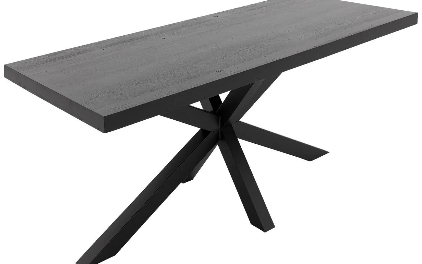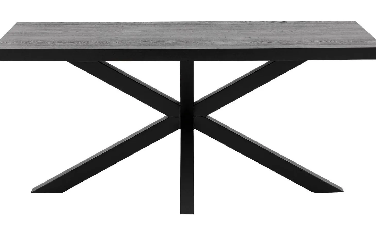 Esstisch Blade hat eine klare rechteckige Form und ein auffälliges Kreuzgestell aus schwarzem Metall. Die Kombination der Eichenholzplatte in schwarzem Soft-Touch-Lack mit dem pulverbeschichteten Stahlgestell verleiht diesem Tisch eine industrielle Ausstrahlung mit Charakter. Mit Platz für 4 Personen ist dieser Tisch perfekt für die Familie.