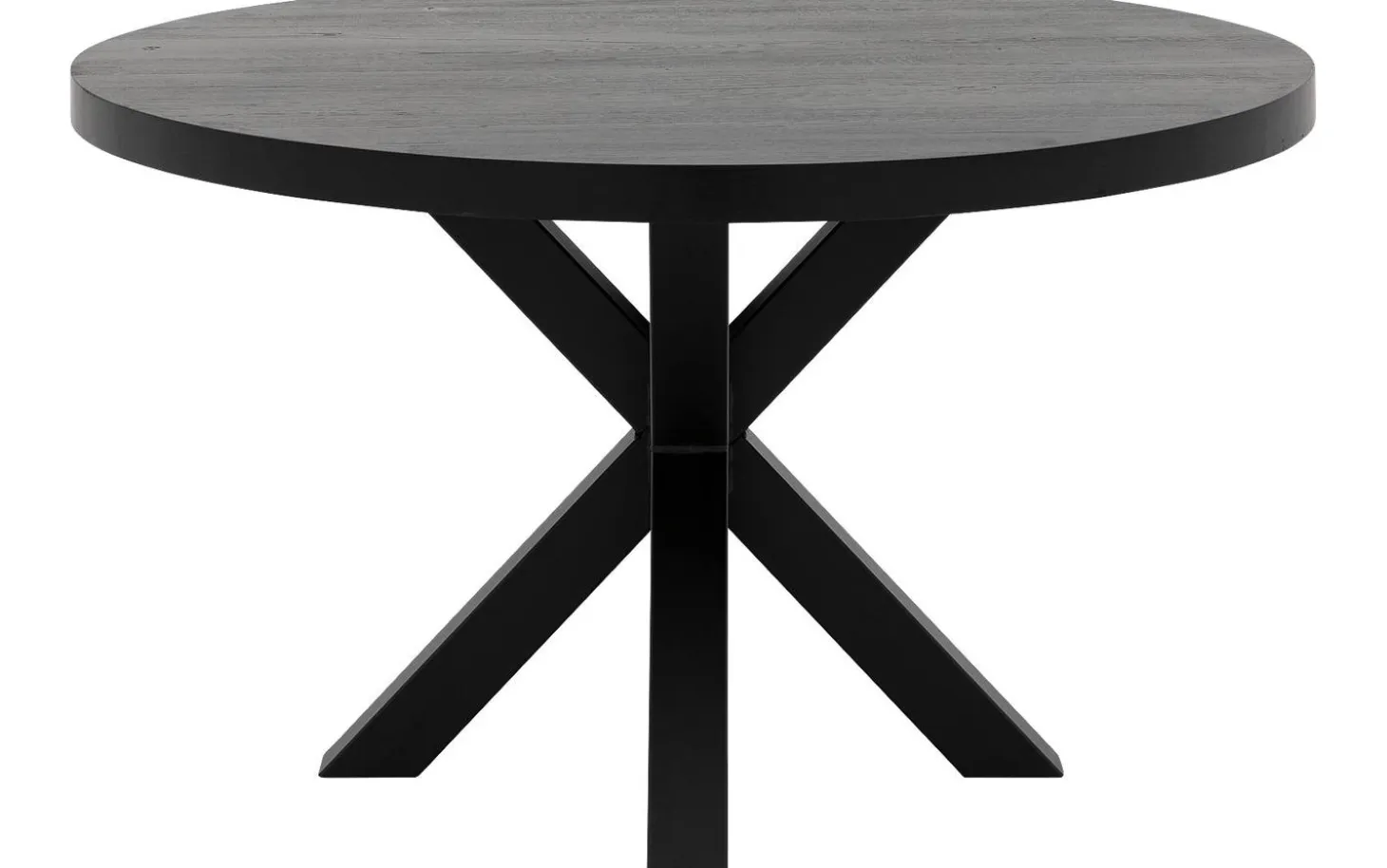 Setzen Sie ein Statement mit dem schwarzen runden Esstisch Blade. Dieser Eichentisch von 110 cm kombiniert industriellen Charakter mit warmer Ausstrahlung. Das natürliche Eichenholz mit schwarzem Soft-Touch-Lack sorgt für einen robusten, aber eleganten Look. Dank des Kreuzfußes aus schwarzem Metall steht dieser Tisch stabil und auffällig in Ihrem Essbereich.