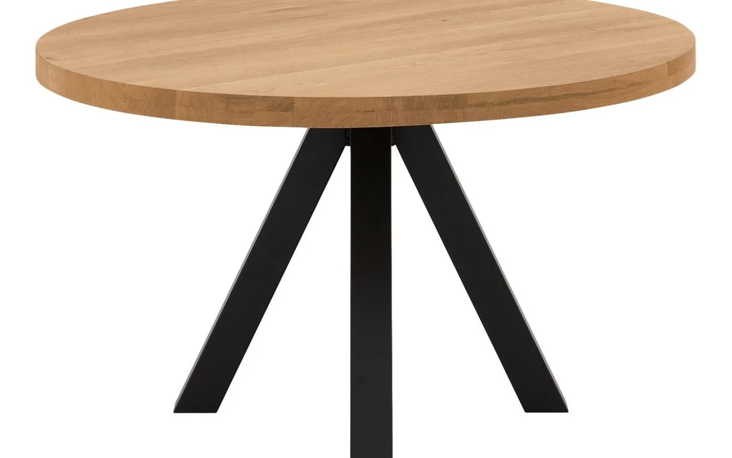 Der Esstisch Blade hat eine runde Form, die perfekt zu gemütlichem Beisammensein passt. Die besonderen Pyramidenfüße aus schwarzem Metall verleihen dem Tisch einen markanten, industriellen Charakter. Mit 4 Sitzplätzen ist dieser Esszimmertisch ideal für die Familie oder ein intimes Dinner.
