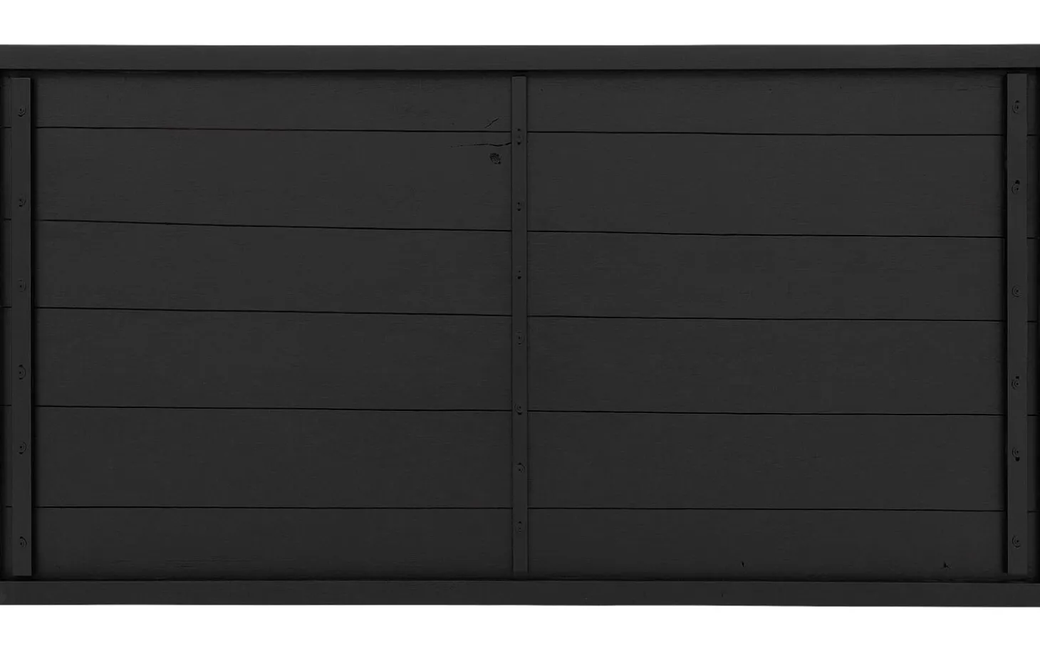Die schwarzen Kufenfüße aus pulverbeschichtetem Metall sorgen für eine kraftvolle Basis. Durch die clevere Konstruktion haben Sie optimale Beinfreiheit und der Tisch steht stabil. Das industrielle Gestell bildet einen schönen Kontrast zum warmen Holz.