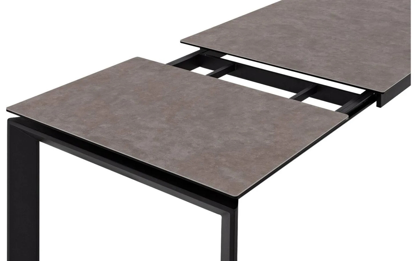 Machen Sie aus jeder Mahlzeit ein besonderes Ereignis mit dem grauen rechteckigen Esstisch Eliana! Dieser ausziehbare Esstisch ist perfekt für sowohl intime Dinner als auch große Zusammenkünfte dank des praktischen Ausziehsystems von 70 cm. Die Keramikplatte ist hitzebeständig und leicht zu pflegen, ideal für geschäftige Familien. Mit dem schlanken rechteckigen Fuß aus schwarzem Metall bietet Eliana Funktionalität und zeitgemäße Ausstrahlung in einem.