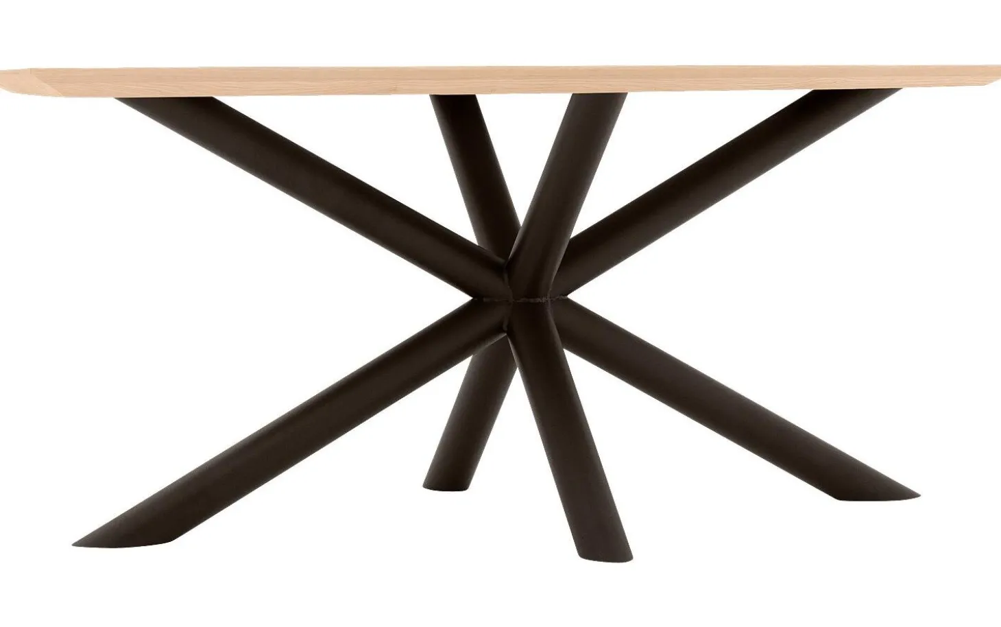 Das Untergestell besteht aus einem Kreuzgestell aus runden Rohren in aged metal matt Ausführung. Diese besondere Fußkonstruktion sorgt für Stabilität und ein auffälliges Design-Statement in Ihrem Essbereich.