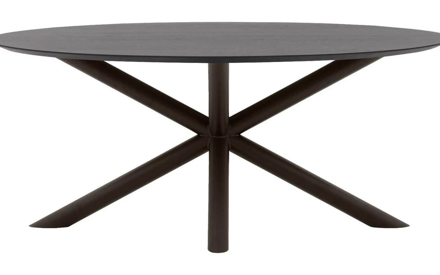 Der Esstisch Gs-1302 hat eine elegante ovale Form mit einer verjüngten Platte, die eine minimalistische Ausstrahlung verleiht. Das Kreuzfußgestell aus runden Rohren in Aged Metal sorgt für eine kraftvolle, robuste Basis, die wirklich auffällt. Der schwarze Eichentisch passt perfekt in ein elegant-schickes Interieur.