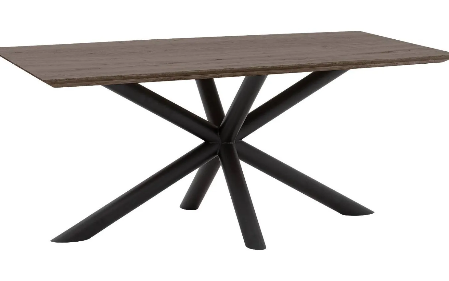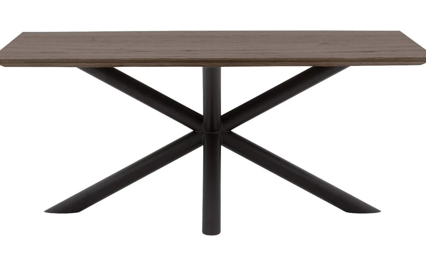 Das schwarze Kreuzfuß-Untergestell aus runden Rohren sorgt für Stabilität und eine robuste Ausstrahlung. Durch die Verjüngung der Platte entsteht ein eleganter und zeitloser Look, der sich leicht mit verschiedenen Einrichtungsstilen kombinieren lässt.