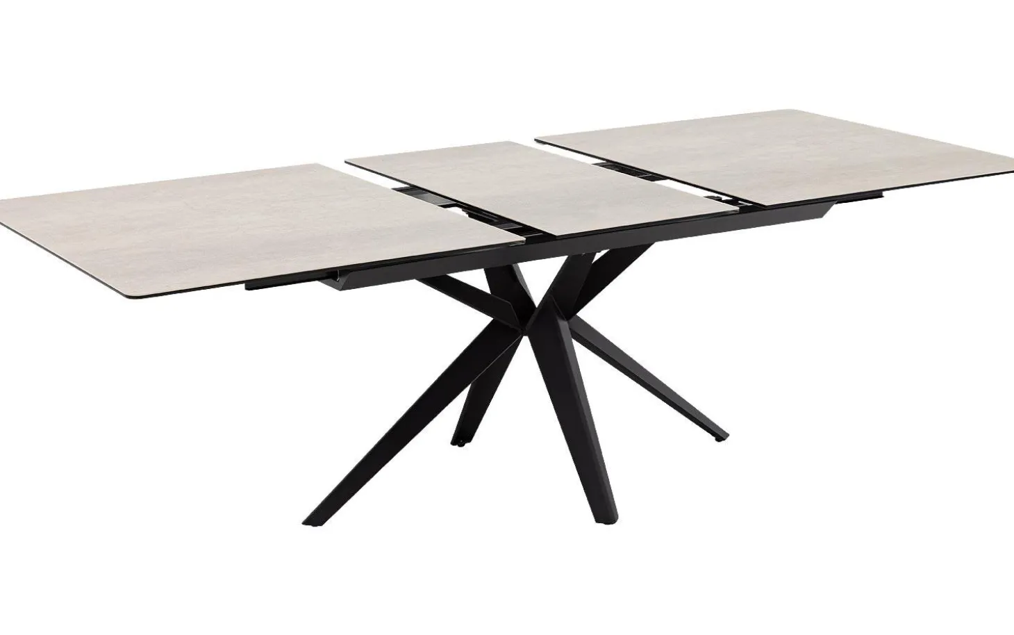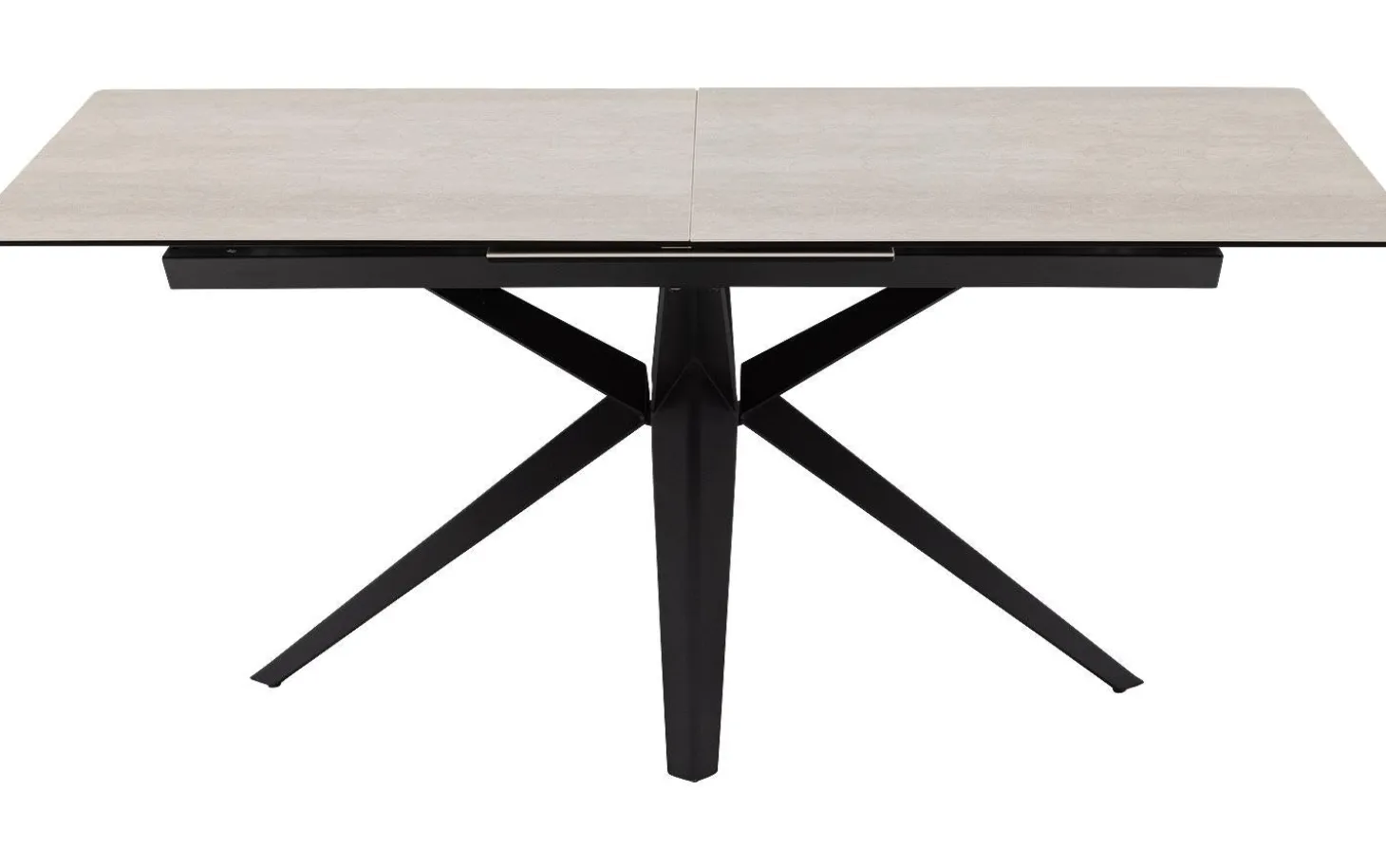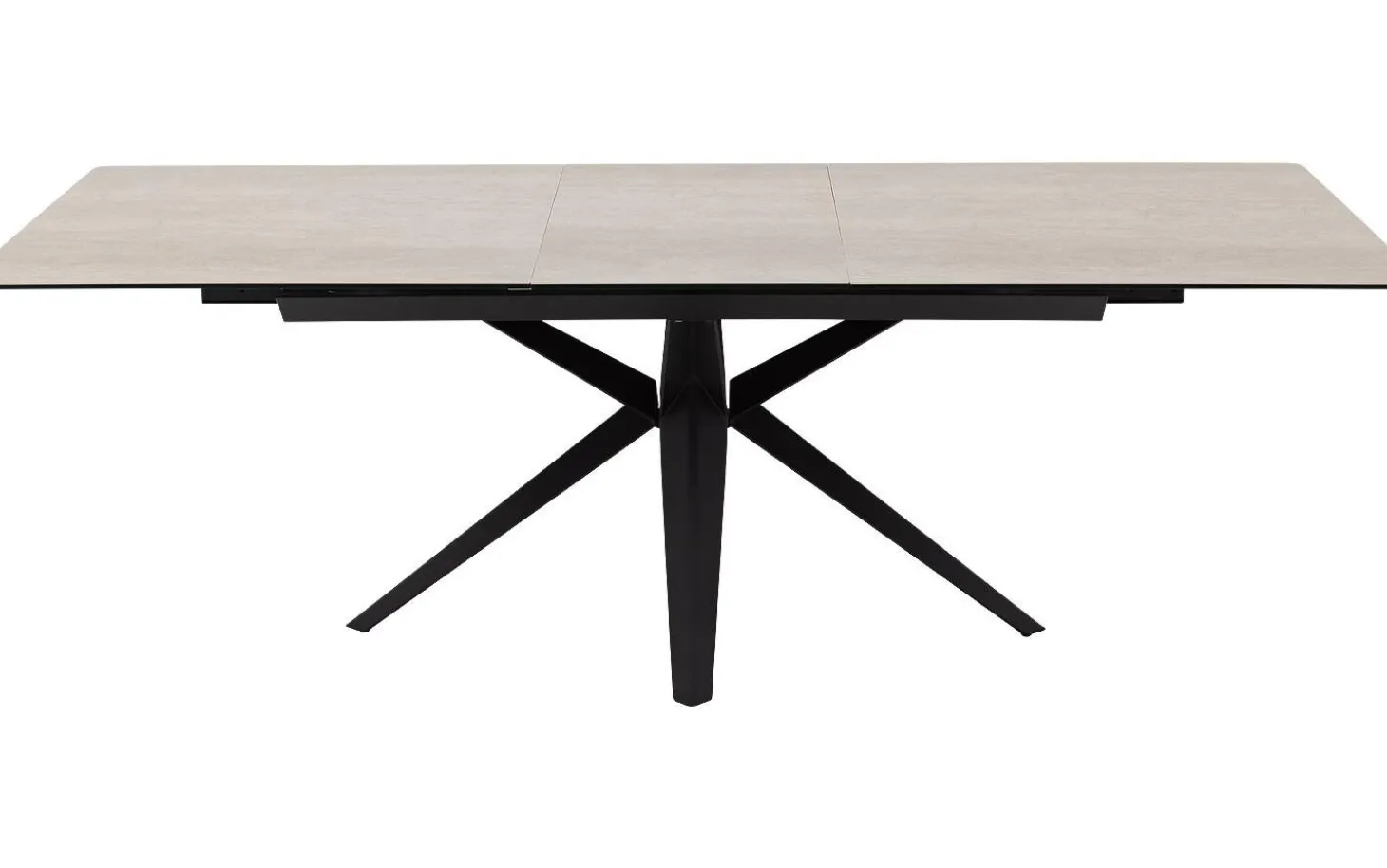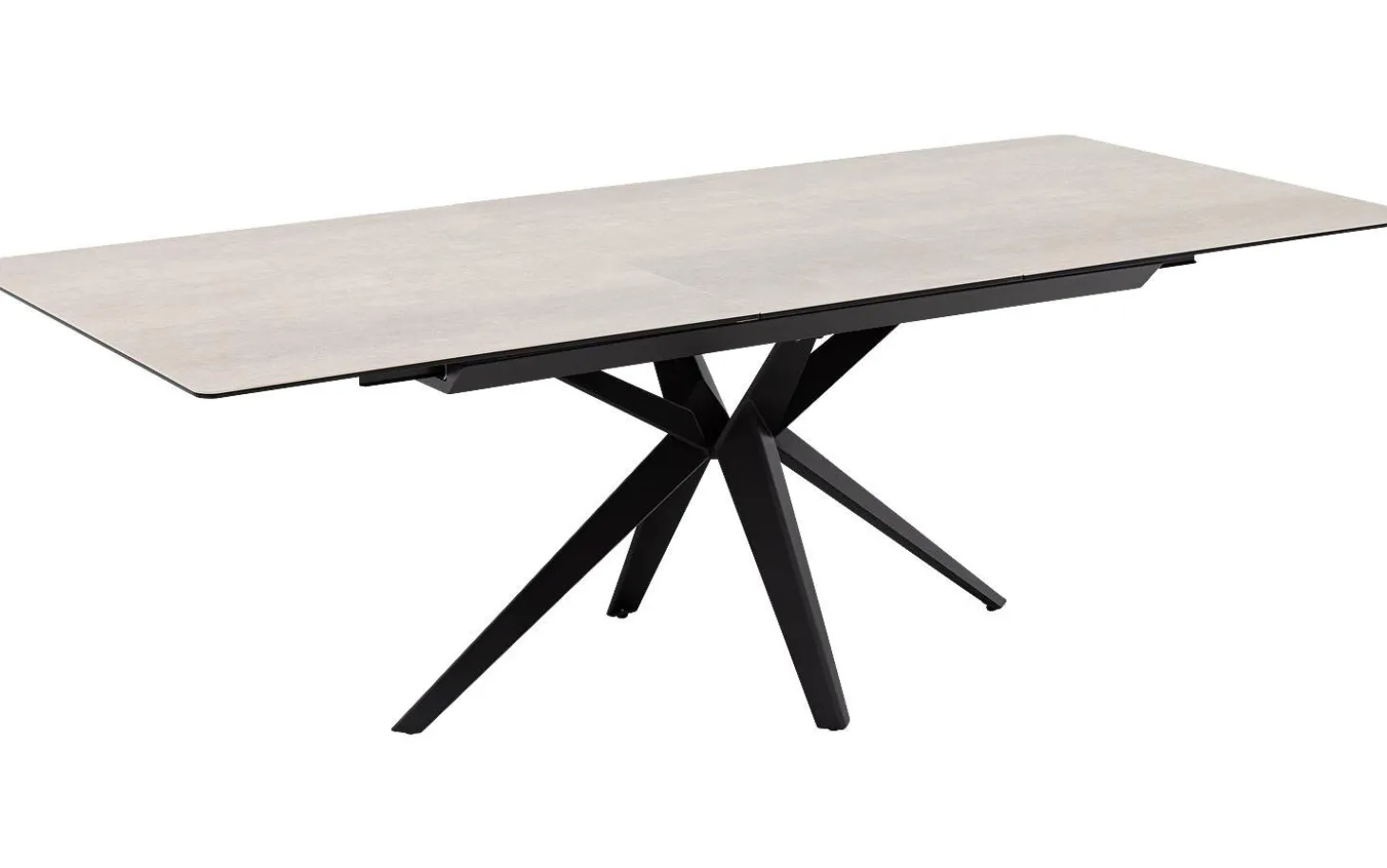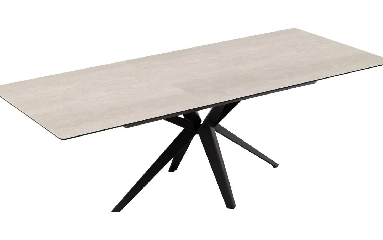 Esstisch Milena hat eine klare rechteckige Form, die perfekt in jedes moderne Esszimmer passt. Die weiße Keramikfarbe in Kombination mit dem schwarzen Kreuzgestell aus pulverbeschichtetem Metall verleiht eine zeitgemäße und elegante Ausstrahlung. Ideal für die ganze Familie und größere Gesellschaften dank des cleveren Ausziehsystems.