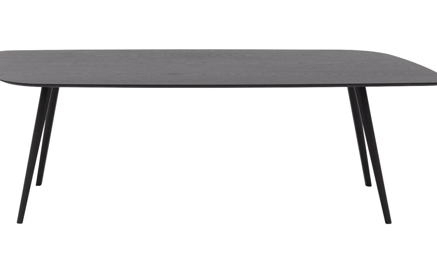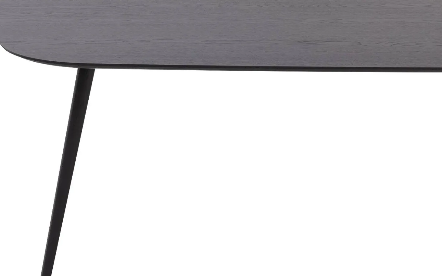 Die Eichenholzplatte ist mit Soft-Touch-Lack in Schwarz RAL 9005 veredelt. Diese Lackschicht schützt das Holz vor Ringen und Kratzern, während die natürliche Struktur fühlbar bleibt. Die dunkle Farbe verleiht Ihrem Esszimmer Wärme und Charakter.