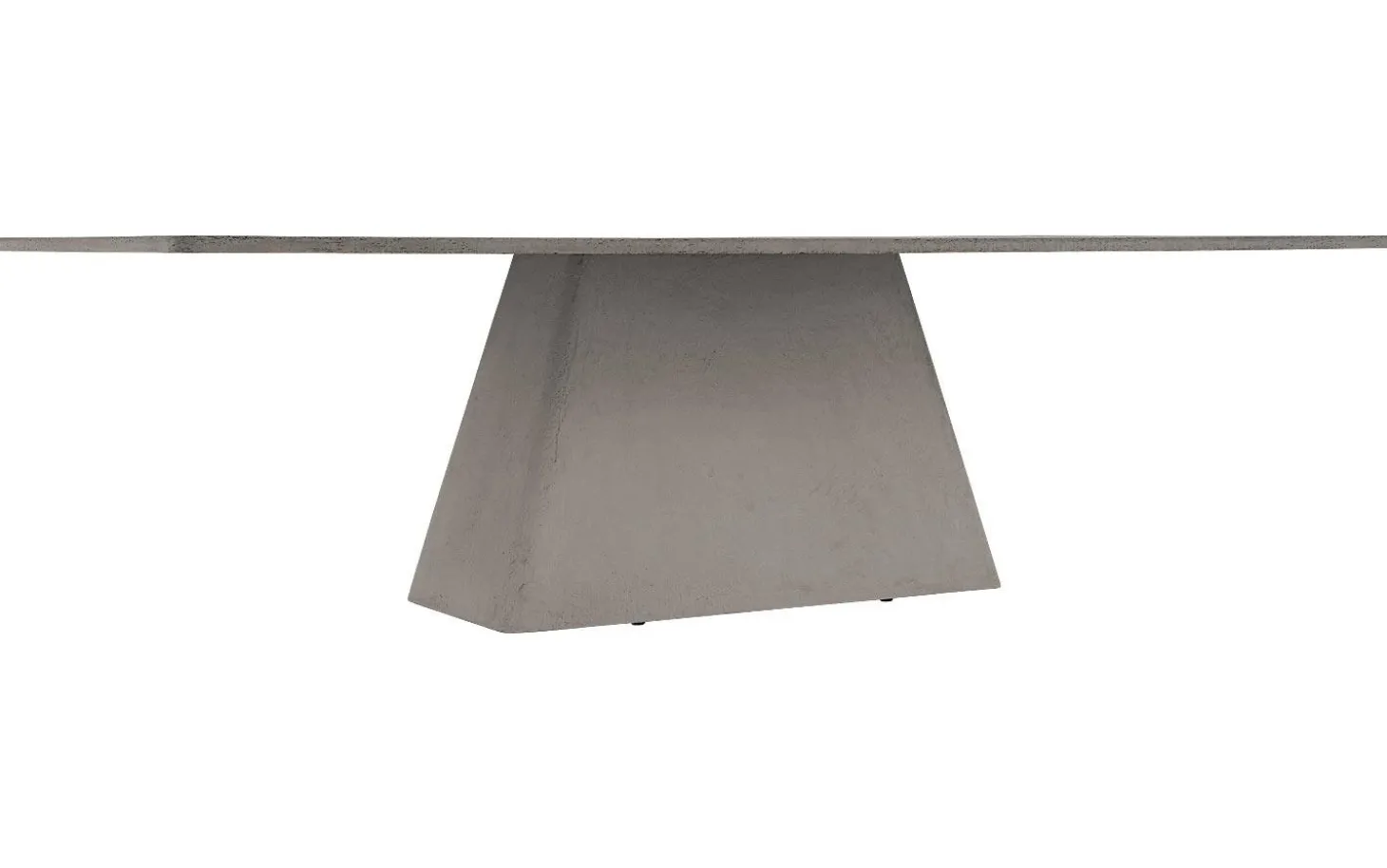 Die rechteckigen Füße sind in derselben Betonfarbe wie die Platte ausgeführt, was für ein schönes Gesamtbild sorgt. Das Blatt ist imprägniert und mit einer matten, transparenten Schutzschicht gegen Flecken und Abnutzung versehen.