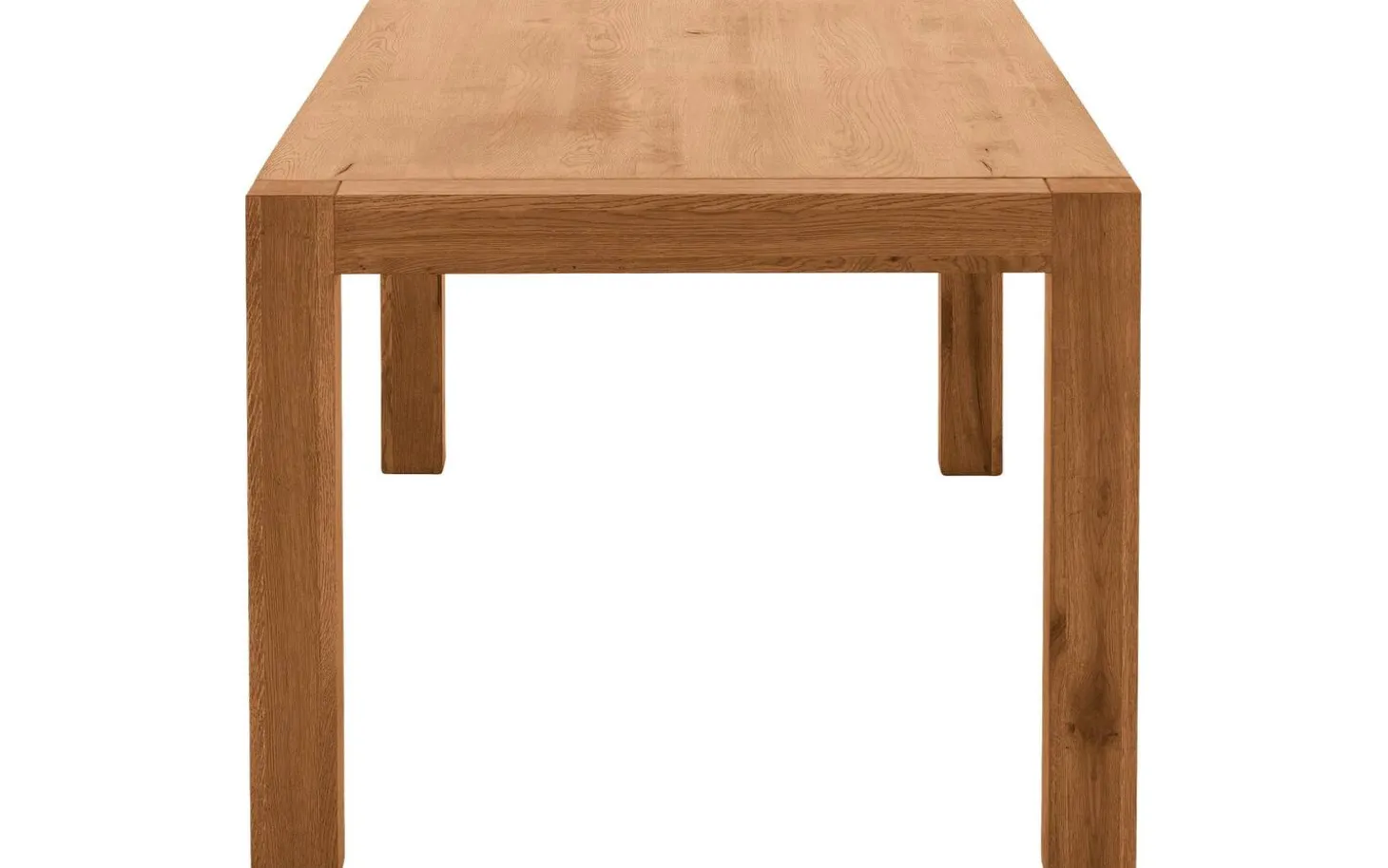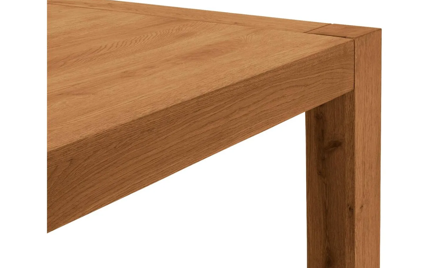Die quadratischen Beine sind durch die Platte geführt für zusätzliche Stabilität. Durch die geraden Linien und die natürliche helle Eichenfarbe ist Roots eine zeitlose Wahl, die jahrelang hält.