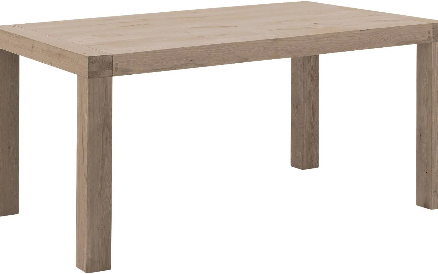 Esstisch Tijn hat eine klare rechteckige Form, die in viele Esszimmer passt. Das gealterte Eichenholz mit sichtbarer Maserung verleiht dem Tisch eine warme, natürliche Ausstrahlung. Die quadratischen Beine an jeder Ecke sorgen für einen robusten und ländlichen Look. Perfekt für gemütliche Tischgespräche mit der ganzen Familie.