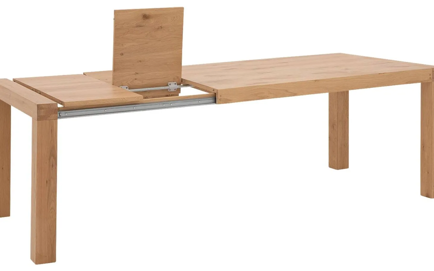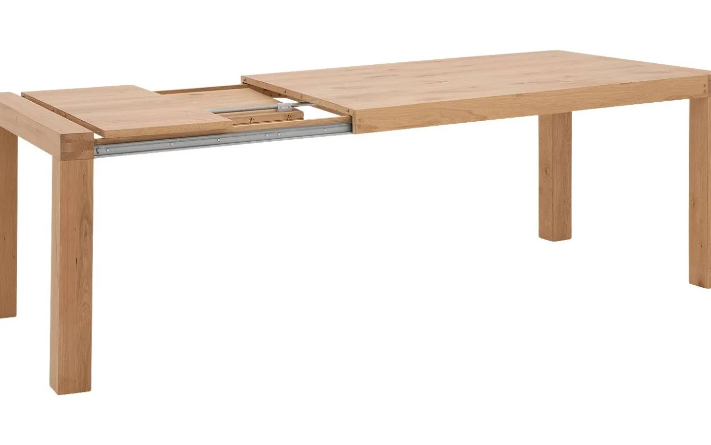 Das Ausziehsystem besteht aus zwei Teilen von je 40 Zentimetern und wird unter der Platte verstaut. Rollen in den Beinen machen das Verlängern besonders einfach. So schaffen Sie im Handumdrehen 80 cm zusätzlichen Platz am Tisch.