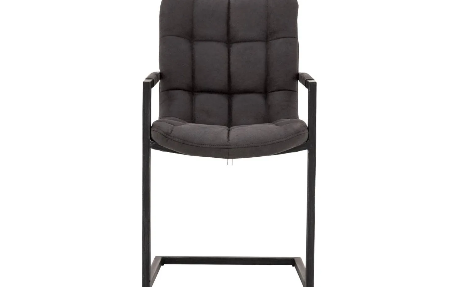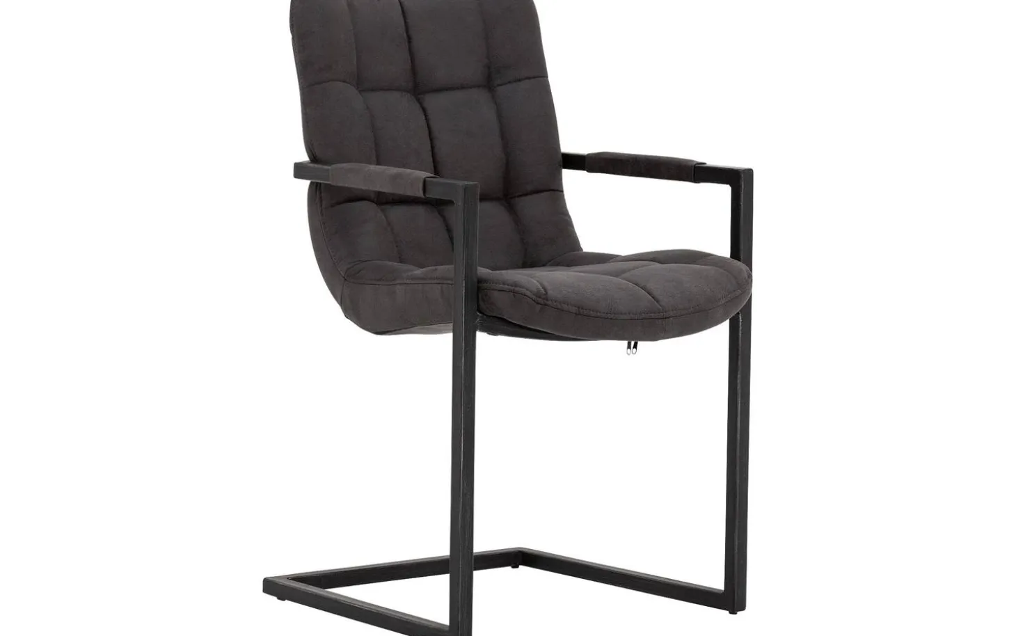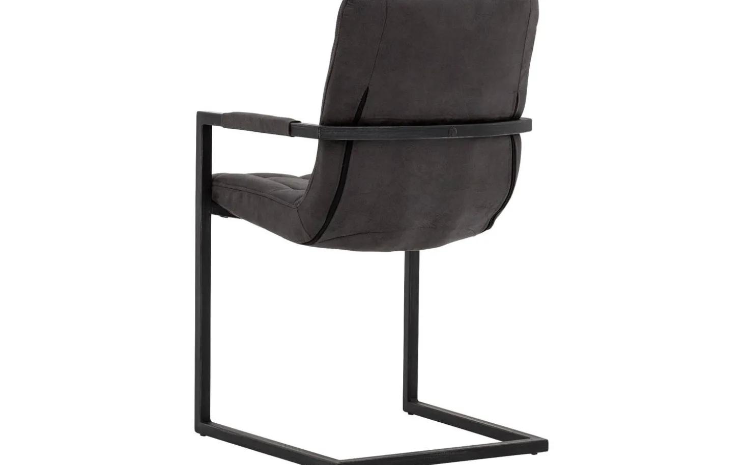 Grauer Esszimmerstuhl Steven mit Armlehne ist ein robustes Modell mit sehr starken Eigenschaften. Der Sitz mit runden Formen ist mit eisenstarkem Mikrofaser in Anthrazit bezogen, der sich leicht reinigen lässt – ideal mit Kindern. Der Stuhl wird von einem metallenen Freischwinggestell getragen, das sich während des Sitzens leicht mitbewegt, für zusätzlichen Komfort während langer Essen.