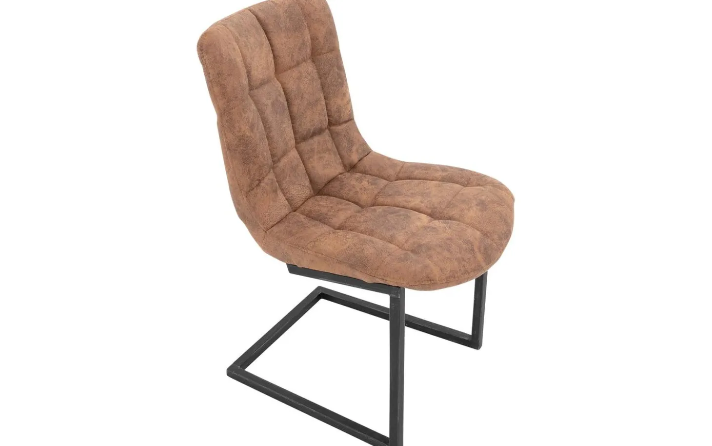 Das robuste schwarze Vintage-Metallgestell mit Freischwingfunktion verleiht dem Stuhl eine industrielle Ausstrahlung. Unter den Füßen befinden sich Gleitschutznoppen, um Kratzer auf Ihrem Boden zu vermeiden. Die feste Polsterung sorgt für einen klaren und modernen Look, der über Jahre schön bleibt.