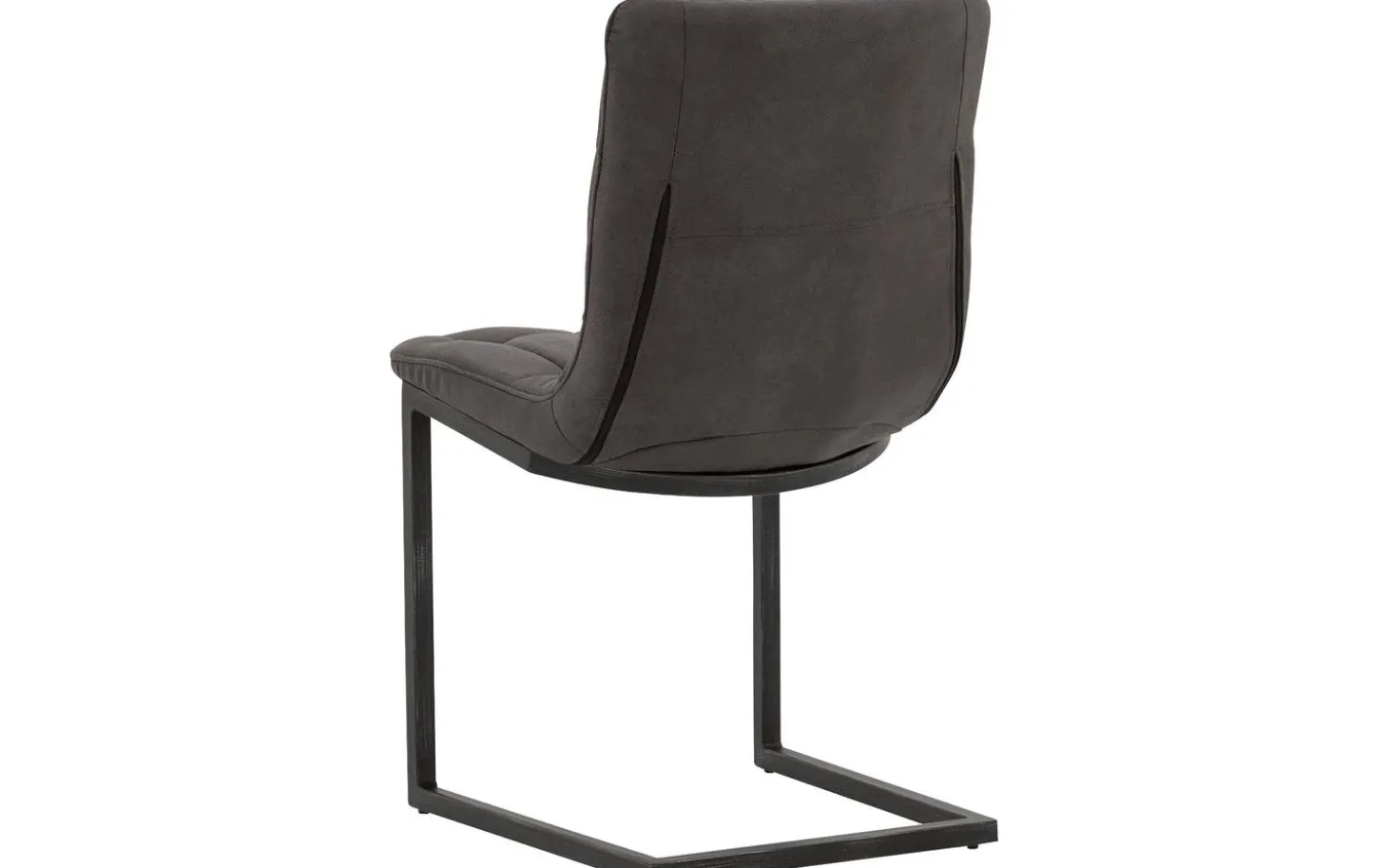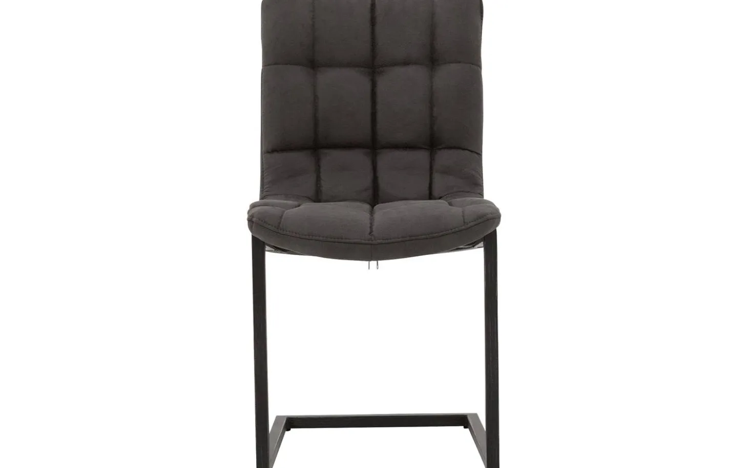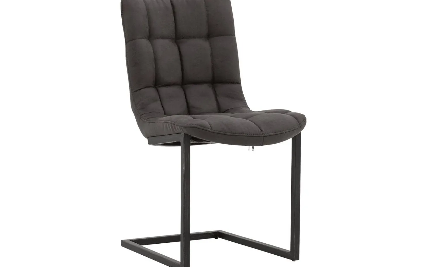 Entdecken Sie den Esszimmerstuhl Steven! Dieser graue Esszimmerstuhl ohne Armlehne kombiniert robustes Design mit praktischem Komfort für Ihr Esszimmer. Der runde Sitz ist mit strapazierfähigem Alcamara-Mikrofaser in Anthrazit bezogen, was diesem Esszimmerstuhl nicht nur ein zeitgemäßes Erscheinungsbild verleiht, sondern ihn auch sehr benutzerfreundlich macht. Dank des schwarzen Vintage-Freischwinggestells genießen Sie einen leicht federnden Sitz während langer Essen.