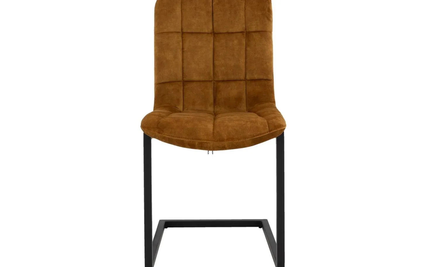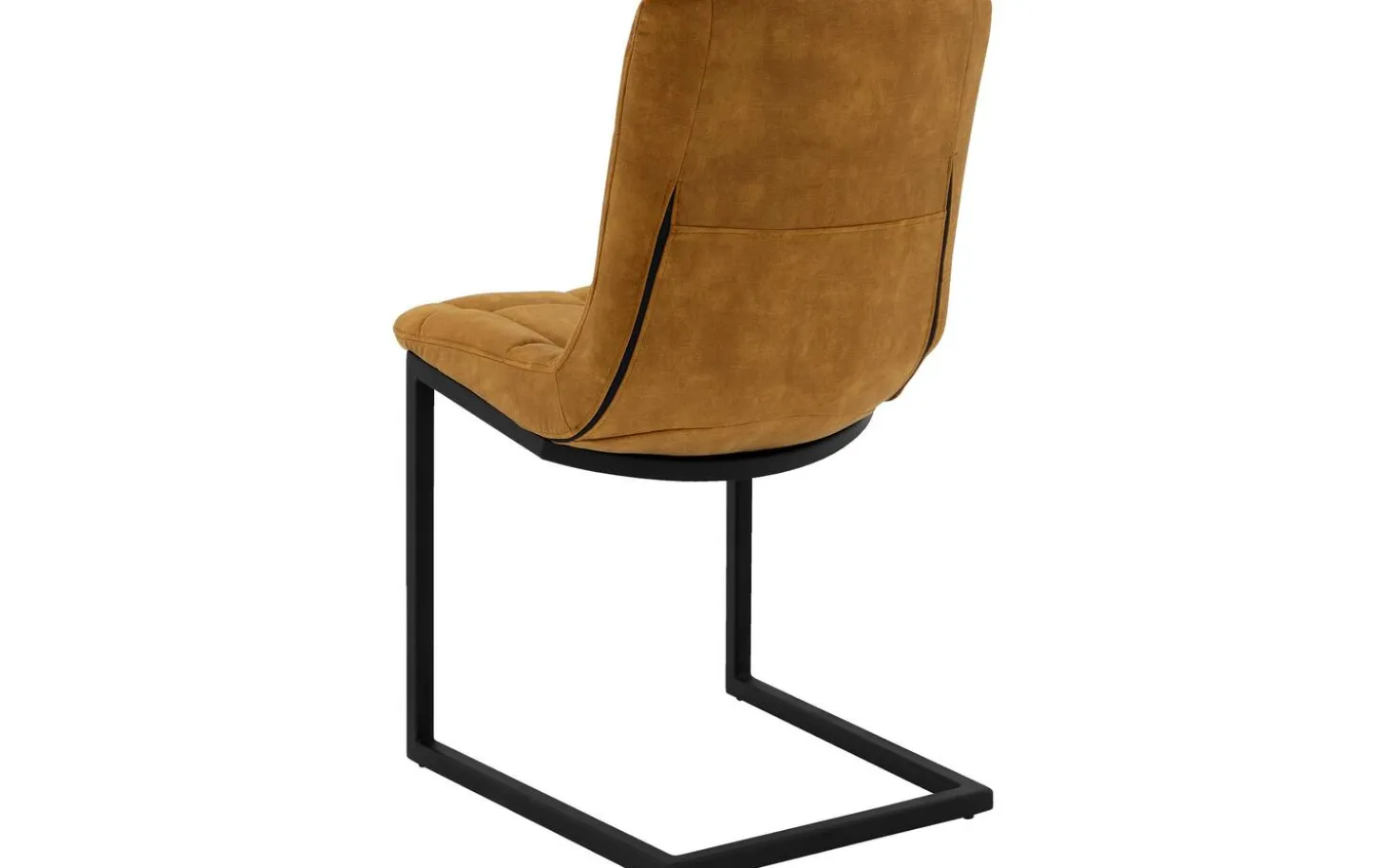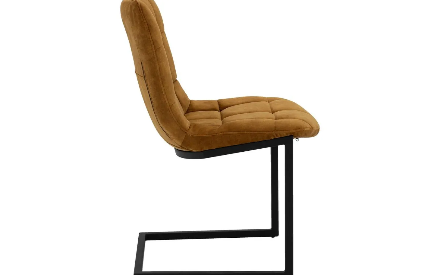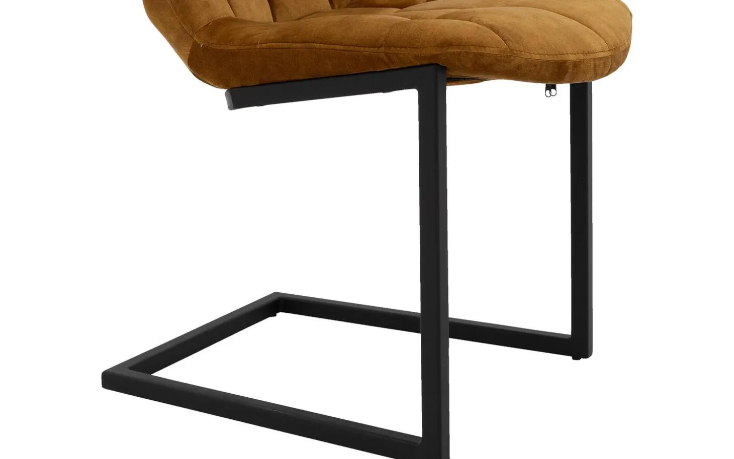 Das schwarz matt lackierte Freischwinggestell bildet einen schönen Kontrast zur goldfarbenen Polsterung und passt perfekt in ein urbanes industrielles Interieur. Die eleganten Linien der Rückenlehne und Sitzfläche verleihen diesem Stuhl für den Esstisch eine zeitlose Ausstrahlung.