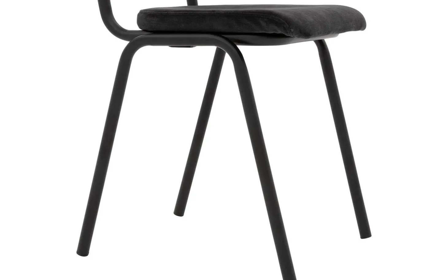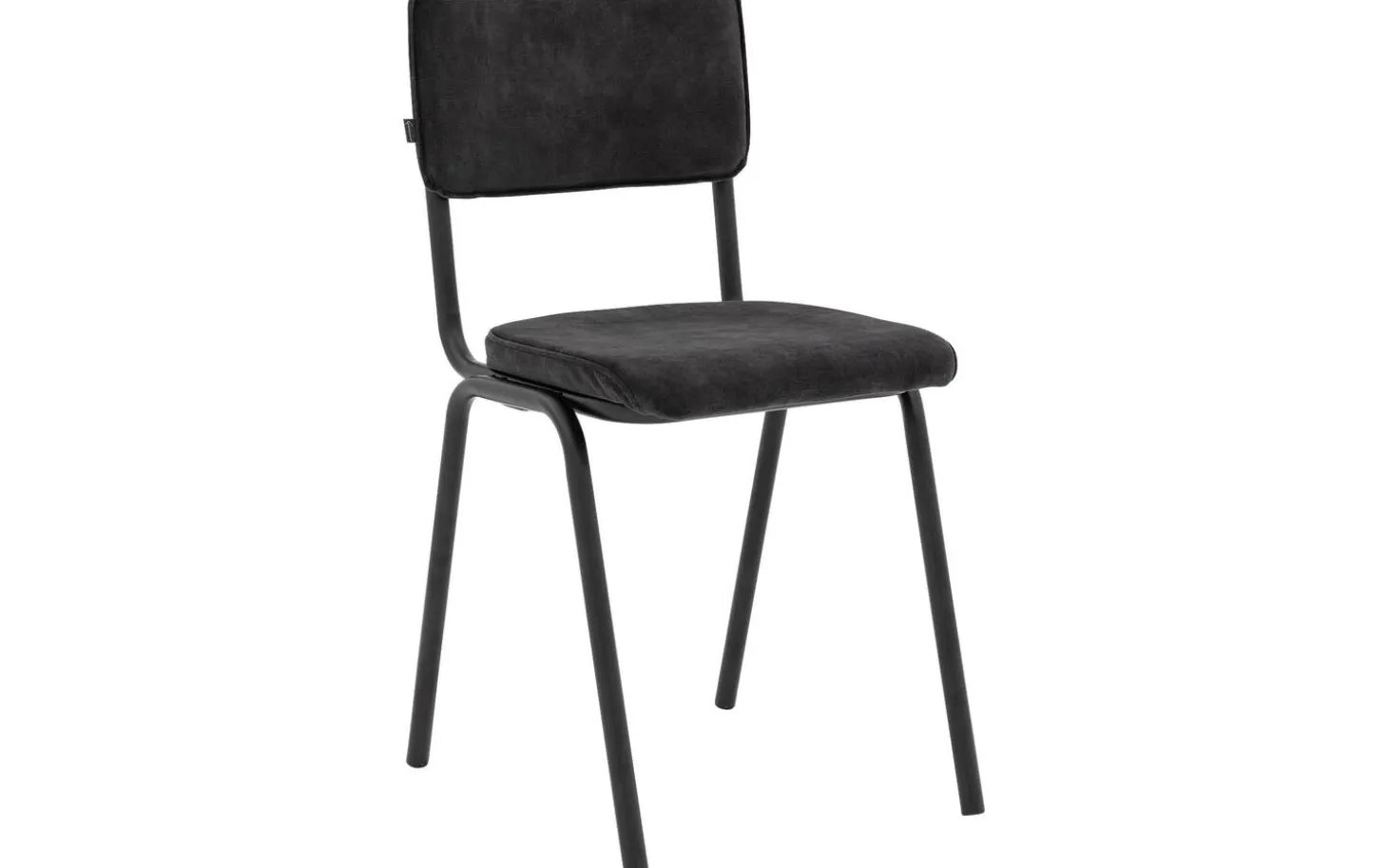 Grauer Esszimmerstuhl Chaplin ohne Armlehne vereint Retro-Design und Bescheidenheit in einem modernen Gewand. Dieser Stuhl aus Stoff erinnert an den vertrauten Schulstuhl, ein Stück Jugenderinnerung für Ihren Essbereich! Der schöne Velourbezug in Anthrazit verleiht Ihrem Interieur eine warme Ausstrahlung, während das klare Design perfekt zu einem urbanen oder industriellen Einrichtungsstil passt. Nehmen Sie Platz und genießen Sie gemütliche Essen mit Freunden und Familie.