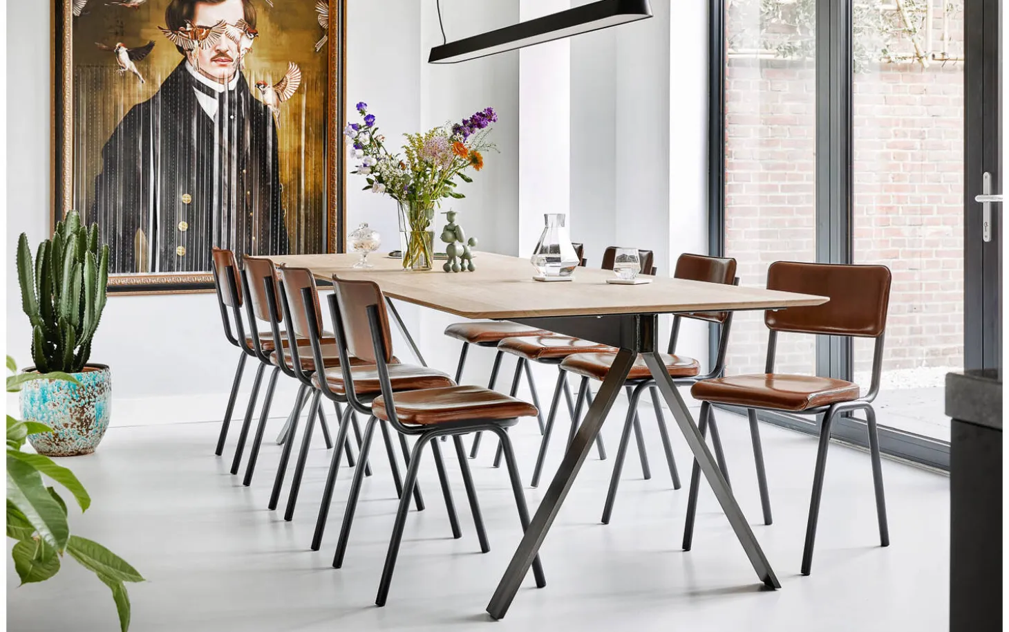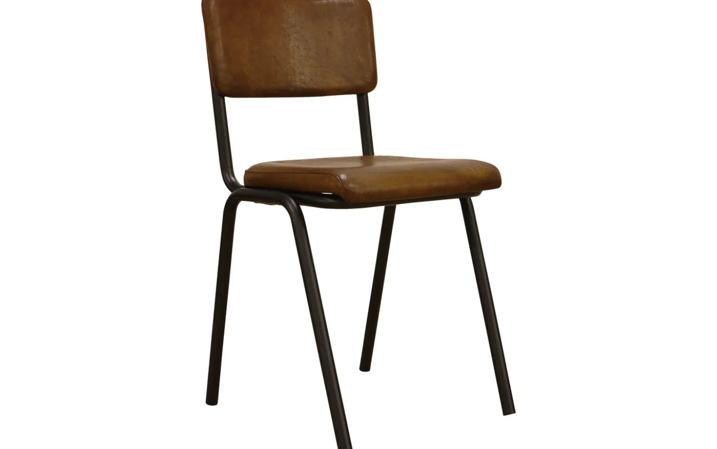 Die schwarzen matten Beine bilden einen schönen Kontrast zum warmen cognacfarbenen Leder. Diese Kombination passt perfekt in ein urbanes industrielles Interieur. Dank der festen Polsterung behält der Stuhl sein schlichtes, modernes Design.