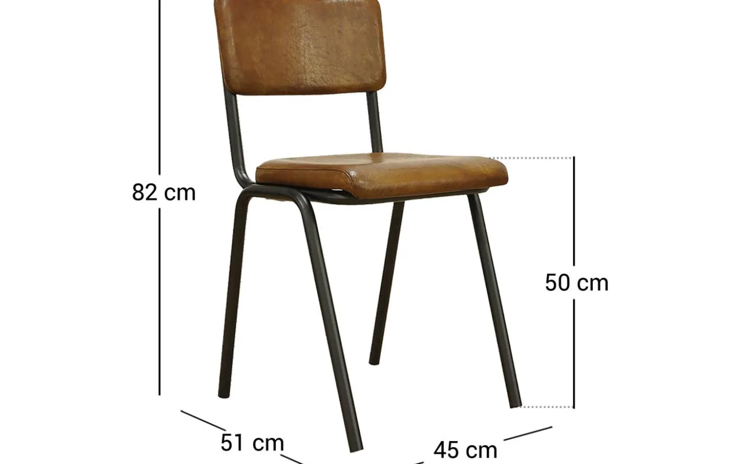 Der cognacfarbene Esszimmerstuhl Chaplin ohne Armlehne bringt einen Hauch von Jugenderinnerungen in Ihre Essecke. Das Retro-Design erinnert an den vertrauten Schulstuhl, jedoch in einer modernen, robusten Ausführung. Der wunderschöne Bezug aus cognacfarbenem Outdoor-Leder verleiht Ihrer Essecke eine robuste Ausstrahlung. Mit seinen kompakten Abmessungen und dem charaktervollen Design passt der Esszimmerstuhl Chaplin perfekt in ein urbanes Industrial-Interieur.