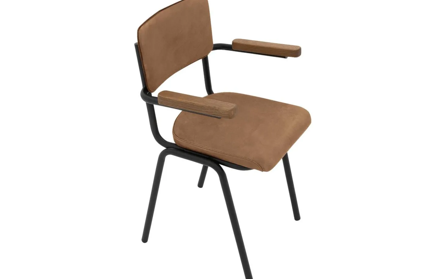 Die schwarz-matten Beine bilden einen stilvollen Kontrast zur braunen Lederbespannung. Mit einer Sitzbreite und -tiefe von 40 cm ist dieser Esszimmerstuhl kompakt, aber sehr funktional. Die feste Polsterung sorgt für einen klaren, modernen Look, der jahrelang schön bleibt.