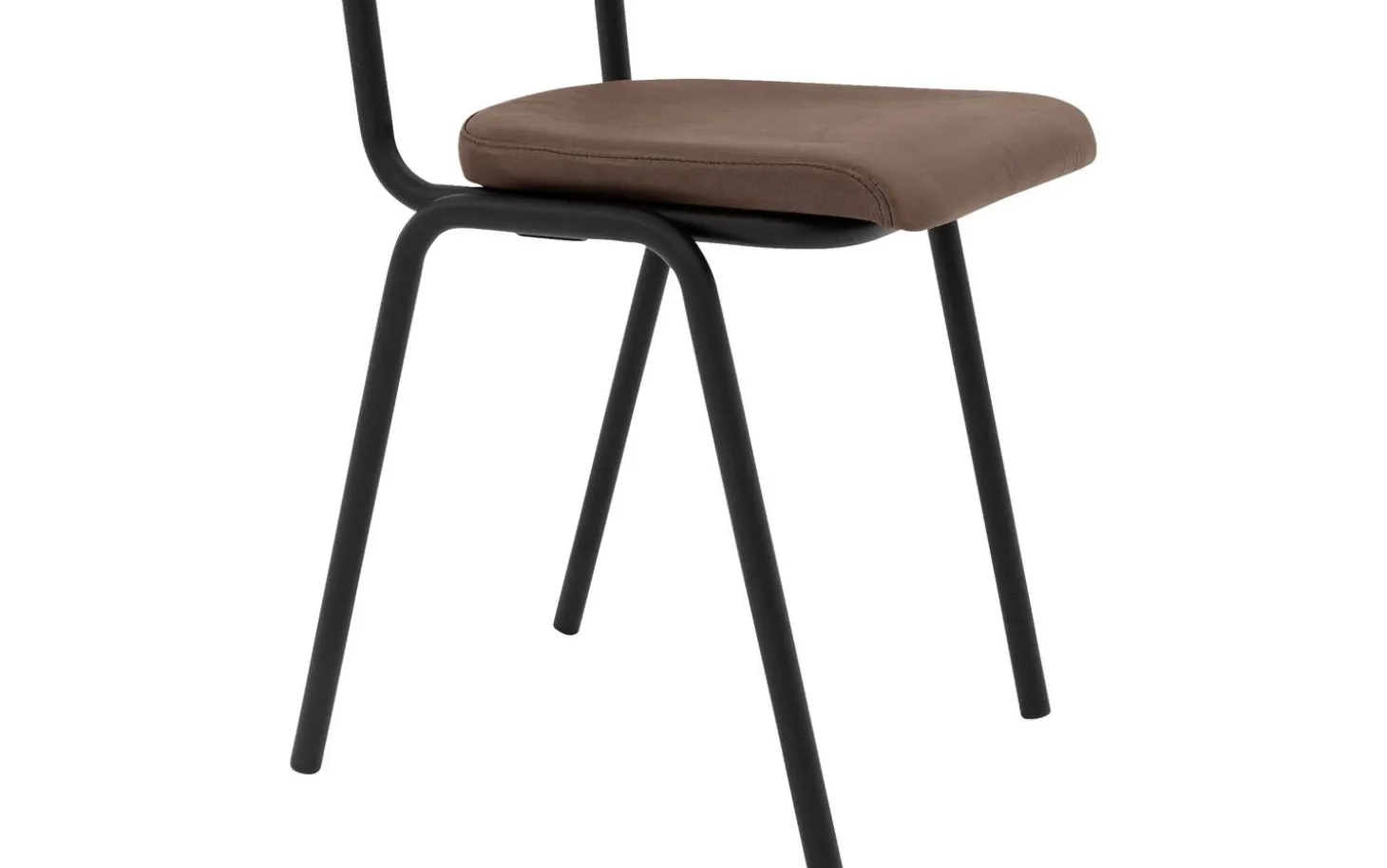 Das besondere Outdoor-Leder verleiht dem Esszimmerstuhl Chaplin eine charakteristische Ausstrahlung. Dieses Leder ist handgewaschen und behält alle natürlichen Merkmale, was dem Stuhl einen authentischen Look verleiht. Die matt schwarzen Beine bilden einen schönen Kontrast zum braunen Leder und passen perfekt in ein urban-industrielles Interieur.