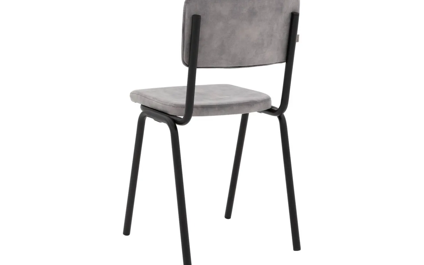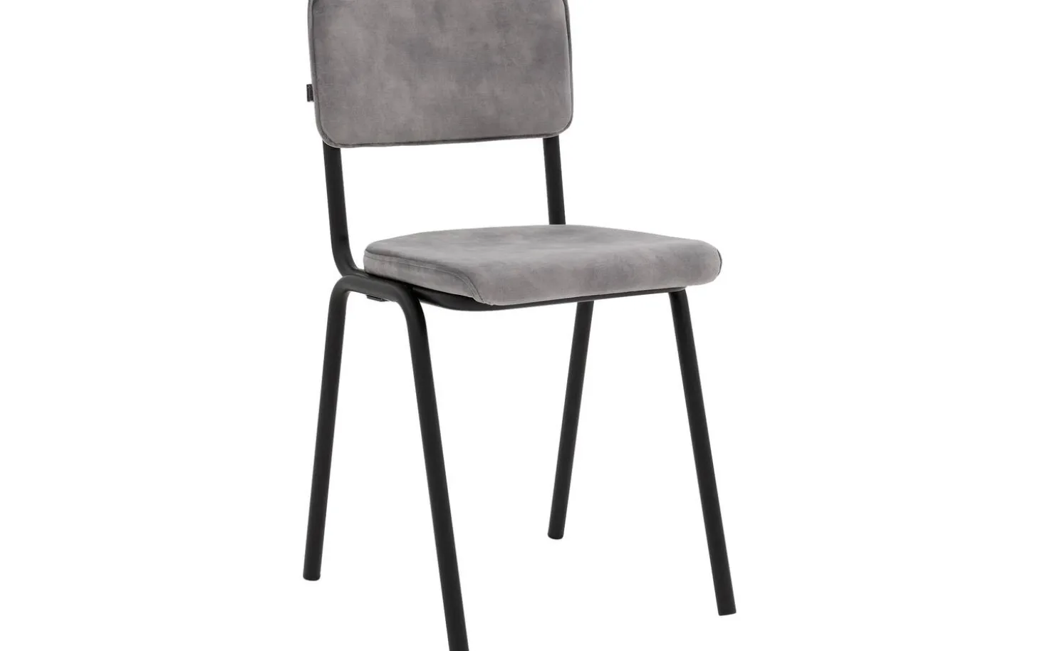 Grauer Esszimmerstuhl Chaplin ohne Armlehne bringt einen Hauch von Jugenderinnerungen in Ihren Essbereich. Das Retro-Design erinnert an den vertrauten Schulstuhl, jedoch in einer neuen und stilvollen Ausführung. Chaplin kombiniert nostalgisches Design mit modernem Komfort dank des weichen Velours-Bezugs in einem schicken grauen Farbton. Die schwarz-matten Metallbeine sorgen für ein stabiles Fundament und passen perfekt zu verschiedenen Einrichtungsstilen, von Urban bis Industriell.