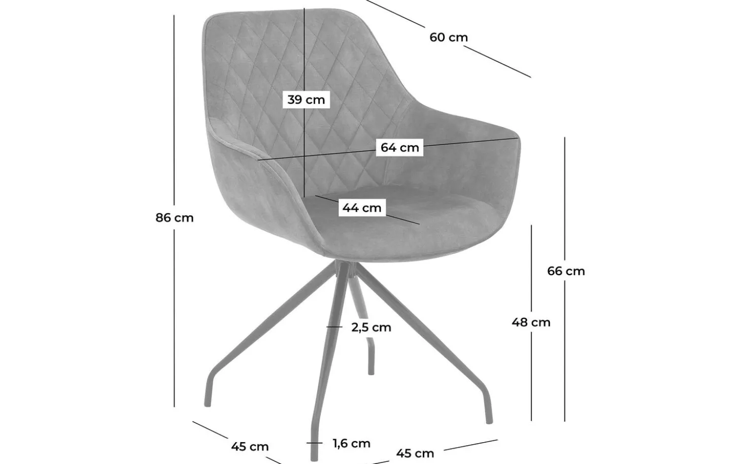 Die schwarzen Beine mit Pulverbeschichtung bilden einen schönen Kontrast zum grauen Bezug. Das elegante Design mit fester Polsterung sorgt für einen klaren Look, der lange schön bleibt. Mit seiner Drehfunktion können Sie leicht an den Tisch heranrücken, ohne den Stuhl zu verschieben.