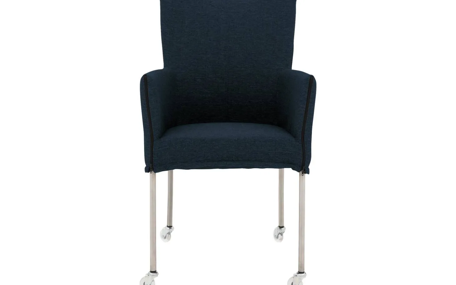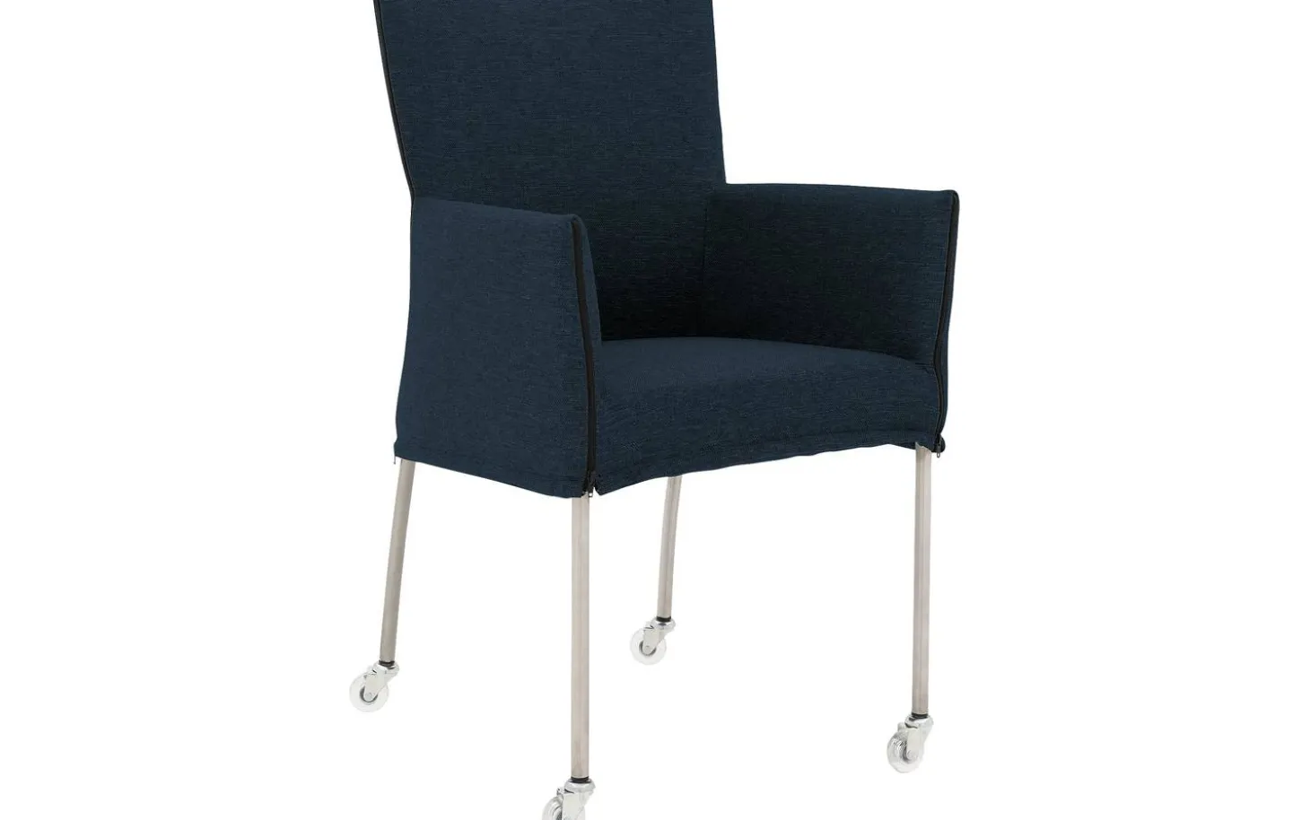 Mit seinen klaren Linien und dem fein gewebten ‚Broadway, marine‘ Stoff hat der Esszimmerstuhl Funk eine zeitlose Ausstrahlung. Dieser blaue Stuhl ist für jahrelange Nutzungsfreude konzipiert, mit einem Stoff, der intensivem täglichen Gebrauch standhält. Das gebürstete Edelstahlgestell bietet eine solide und stilvolle Basis, komplett mit praktischen Rollen.