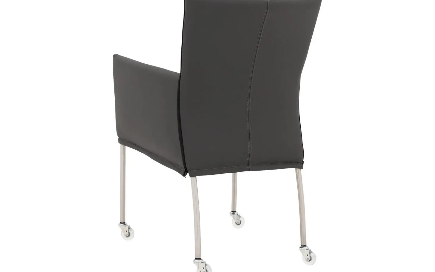 Der Esszimmerstuhl Funk ist ein luxuriöser Designstuhl mit zeitloser Optik. Funk ist mit einem geschmeidigen und langlebigen Masterleder handwerklich bezogen. Der Edelstahlrahmen in Kombination mit der hochwertigen Luxafoam-Polsterung garantieren jahrelanges stilvolles und bequemes Beisammensitzen bei Tisch. Der Esszimmerstuhl Funk ist mit praktischen Skater-Rollen ausgestattet, wodurch sich der Stuhl leicht verschieben lässt. Auch das Aufstehen wird dadurch erleichtert.