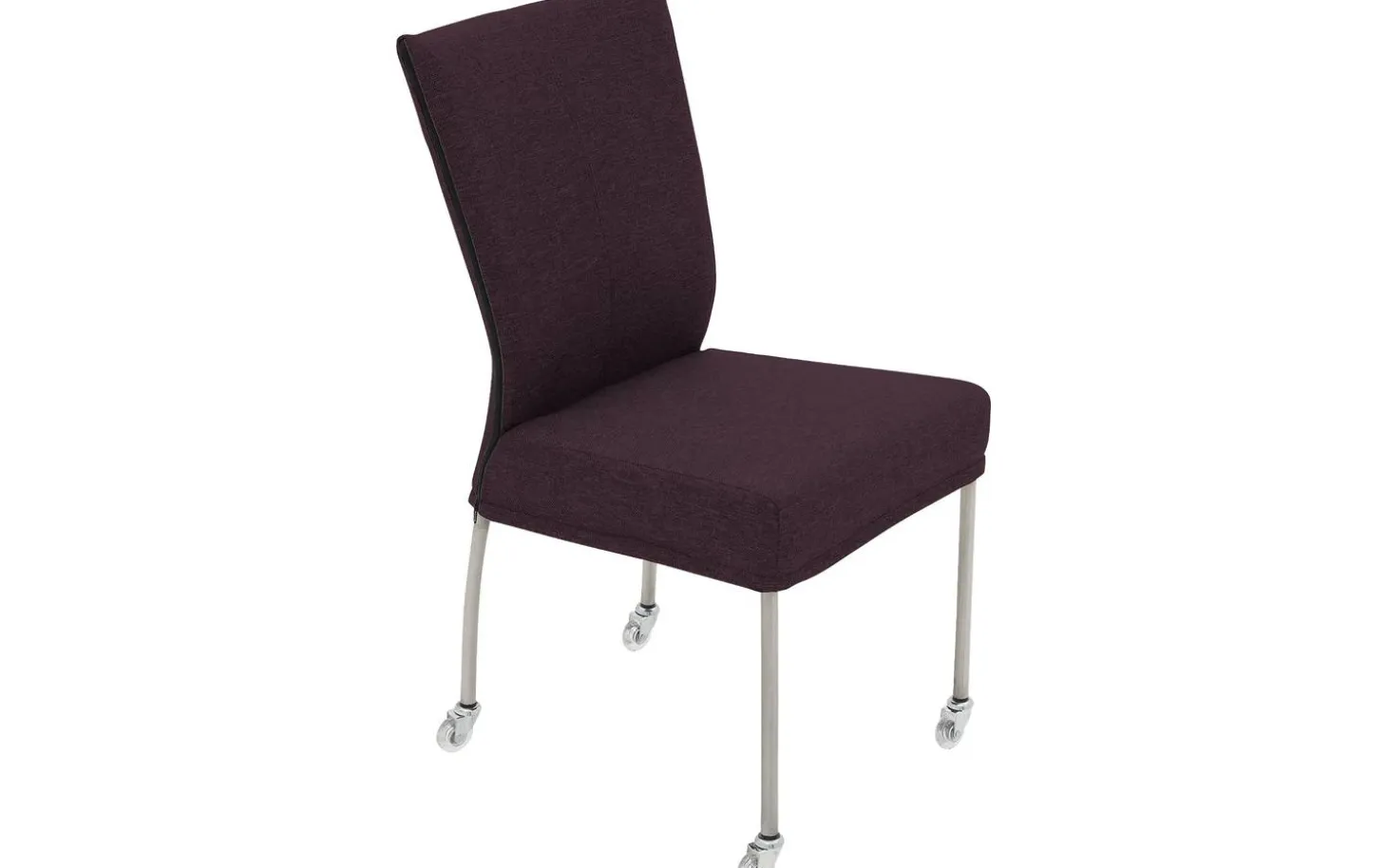 Entdecken Sie den Esszimmerstuhl Funk! Dieser rosafarbene Stuhl aus Stoff ohne Armlehne verbindet stilvolles Design mit praktischem Komfort. Der fein gewebte Aubergine-Stoff verleiht diesem Esszimmerstuhl eine moderne und zeitlose Ausstrahlung. Dank der praktischen Skate-Rollen setzen Sie sich mühelos an den Tisch und stehen nach dem Essen leicht wieder auf. Perfekt für lange, gesellige Essen mit Familie und Freunden.