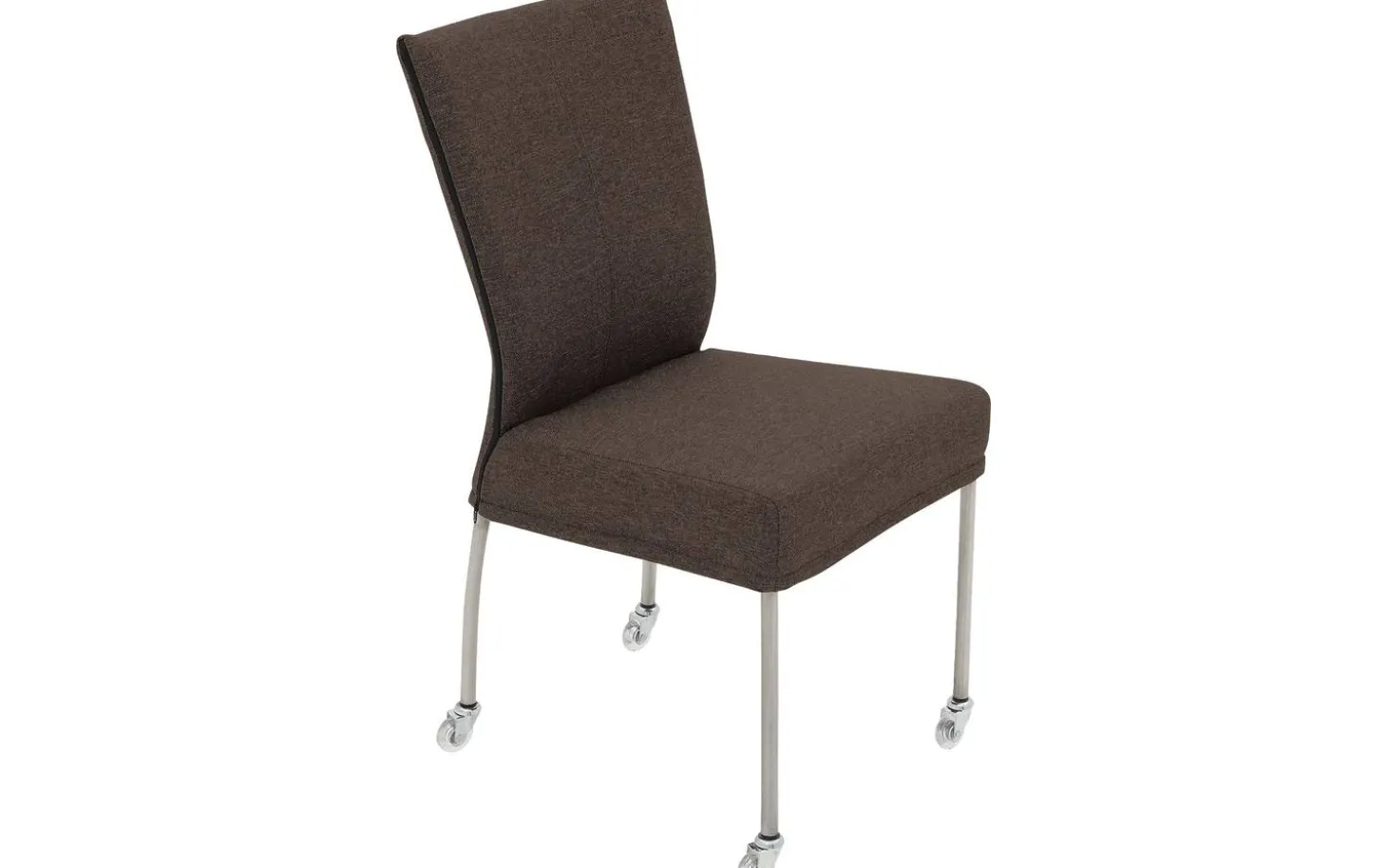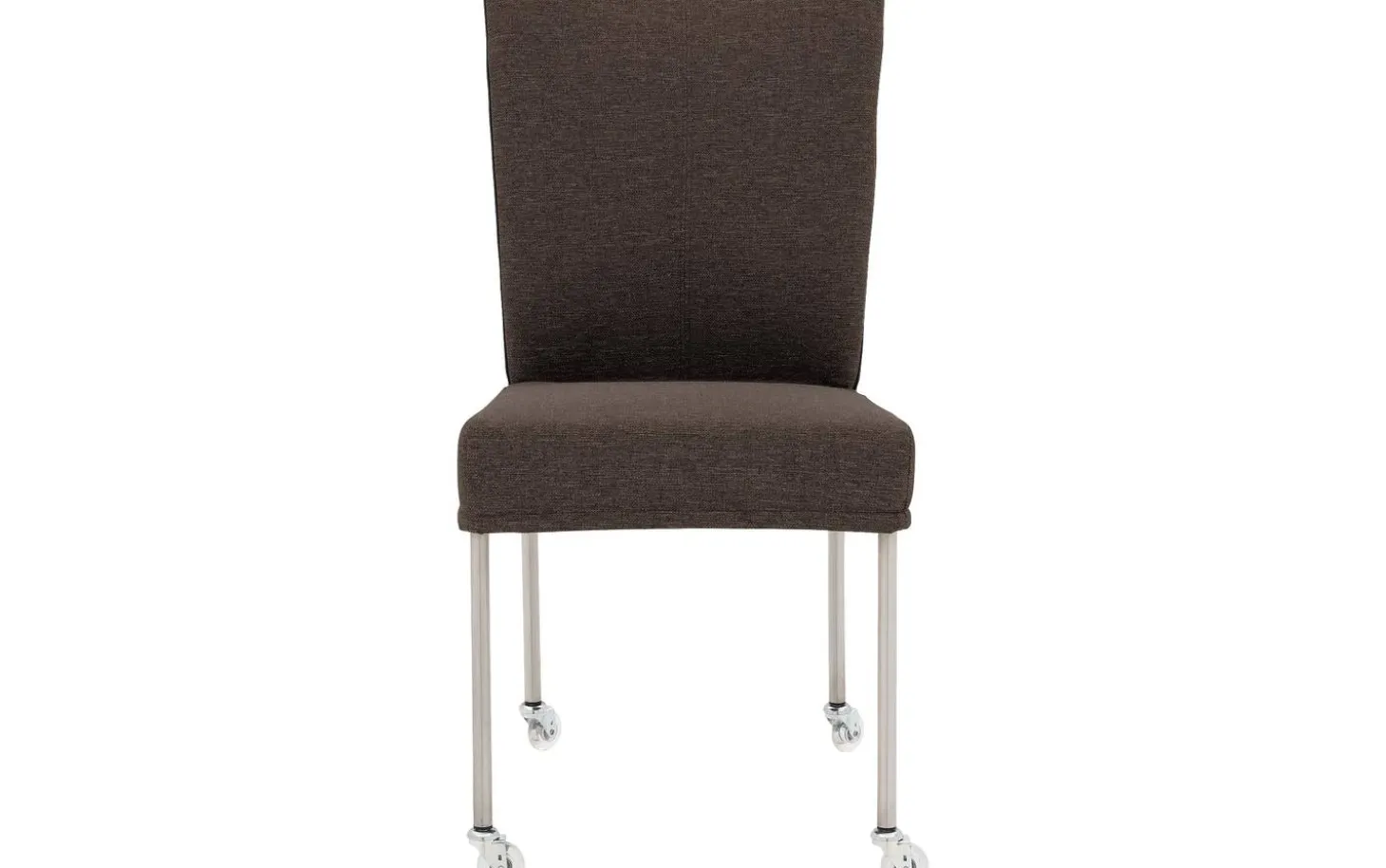 Das gebürstete Edelstahlgestell bietet ein stilvolles und robustes Fundament, komplett mit praktischen Rollen. Die feste Polsterung sorgt für einen klaren und modernen Look, der jahrelang schön bleibt. Durch das Design ohne Armlehne können Sie diesen Stuhl leicht an den Esstisch schieben.