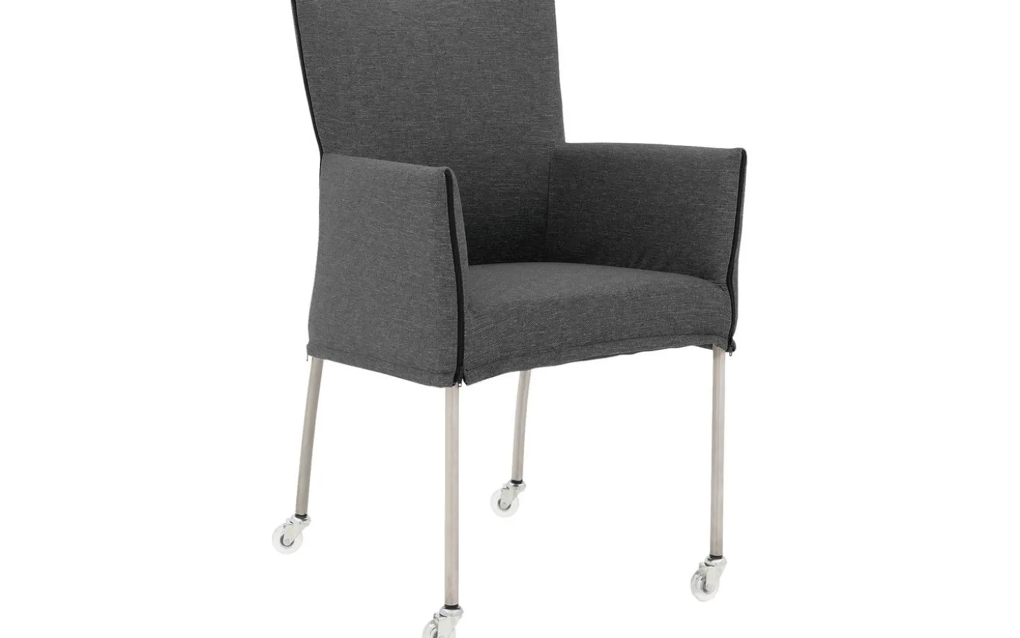 Grauer Esszimmerstuhl Funk mit Armlehne kombiniert modernes Design mit praktischem Komfort. Dieser stilvolle Stuhl ist handwerklich mit einem fein gewebten Broadway-Stoff in Dunkelgrau bezogen. Die praktischen Kufen machen das Heranrücken und Aufstehen vom Tisch mühelos – perfekt für langanhaltende Essen. Mit seiner zeitlosen Ausstrahlung passt Funk in verschiedene Einrichtungsstile, von modern bis klassisch.
