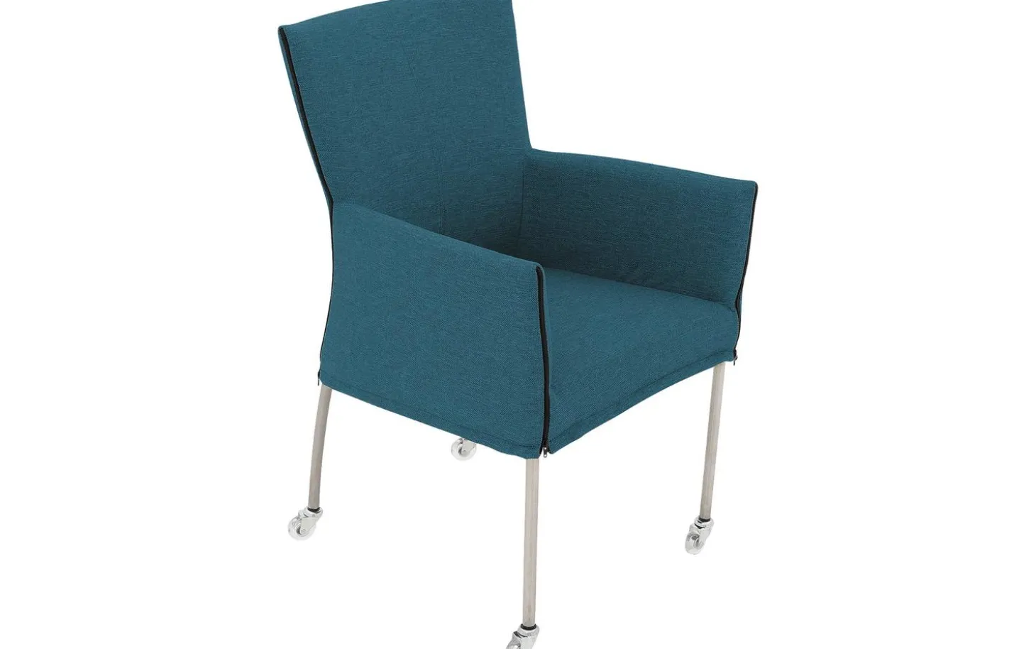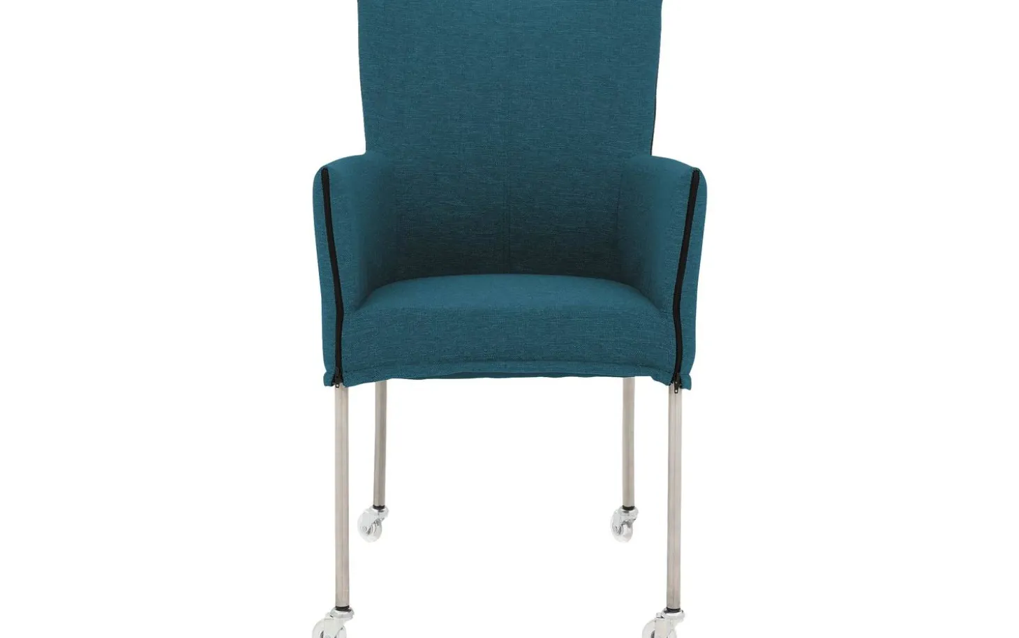 Betrachten Sie den Esszimmerstuhl Funk! Dieser blaue Esszimmerstuhl mit Armlehne kombiniert modernes Design mit praktischem Komfort. Der fein gewebte Stoff in einem wunderschönen Petrolblauton verleiht Funk eine zeitlose Ausstrahlung. Dank der praktischen Skate-Rollen rücken Sie leicht an den Esstisch und stehen nach dem Essen schnell wieder auf. Die gebürsteten Edelstahlbeine bilden eine stilvolle Basis für diesen vielseitigen Stuhl.