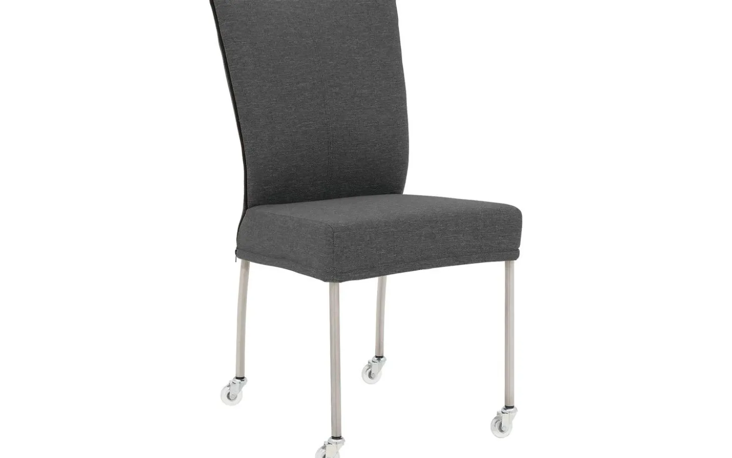 Die Kombination aus dem grauen, fein gewebten Textil und dem Edelstahlgestell macht diesen Esszimmerstuhl vielseitig einsetzbar in verschiedenen Einrichtungsstilen. Die feste Polsterung sorgt zudem für einen klaren und zeitgemäßen Look, der jahrelang schön bleibt.