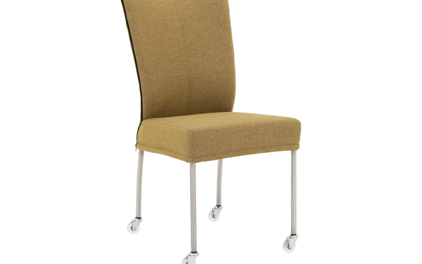Entdecken Sie den Esszimmerstuhl Funk! Dieser grüne Esszimmerstuhl ohne Armlehnen kombiniert modernes Design mit praktischem Komfort. Der fein gewebte Broadway-Stoff in Olivgrün verleiht dem Stuhl eine frische und zeitlose Ausstrahlung, während die hochwertige Schaumstoffpolsterung für ein angenehmes Sitzerlebnis sorgt. Dank der praktischen Rollen nehmen Sie mühelos am Esstisch Platz und stehen nach dem Essen schnell wieder auf.