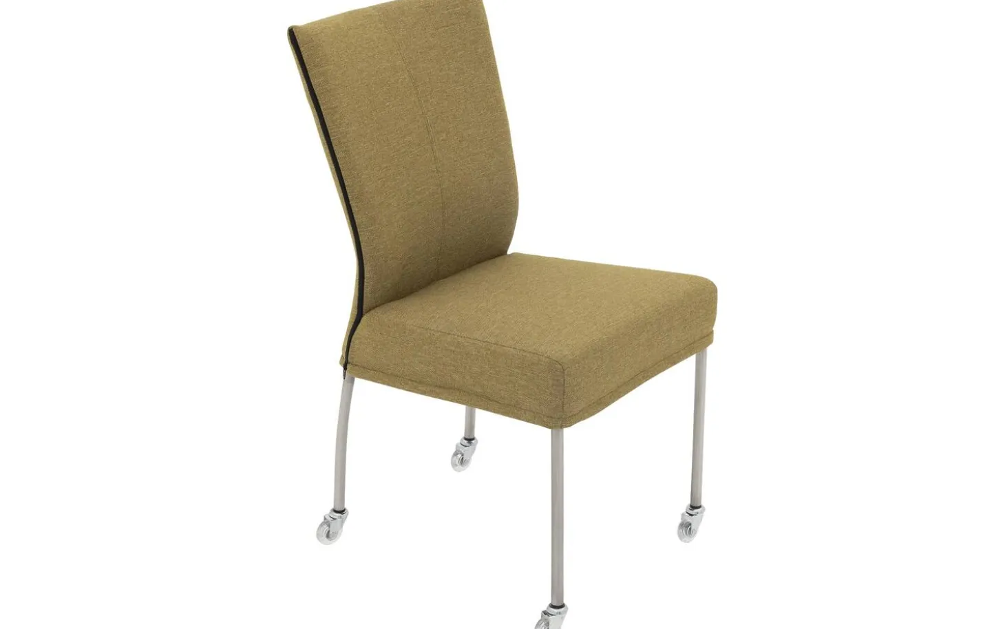 Mit seinen klaren Linien und der olivgrünen Broadway-Polsterung hat dieser Stuhl eine moderne Ausstrahlung. Der fein gewebte Stoff ist nicht nur schön, sondern auch praktisch, geeignet für den intensiven täglichen Gebrauch. Das gebürstete Edelstahlgestell bietet eine solide und stilvolle Basis, komplett mit praktischen Rollen.