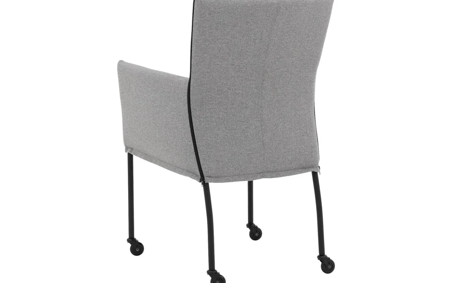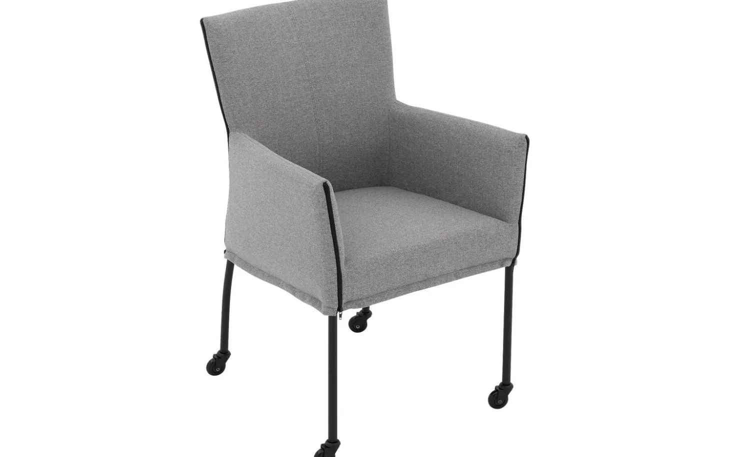Grauer Esszimmerstuhl Funk mit Armlehne vereint Komfort und Stil an Ihrem Esstisch. Dieser moderne Stuhl ist mit einem fein gewebten grauen Stoff namens Broadway bezogen, der sowohl schön aussieht als auch langlebig ist. Dank der praktischen schwarzen Laufrollen lässt er sich leicht an den Esstisch heranziehen und nach dem Essen wieder bequem aufstehen. Die Kombination aus klarem Design und weicher Polsterung macht diesen Esszimmerstuhl zu einer vielseitigen Bereicherung für jedes Esszimmer.