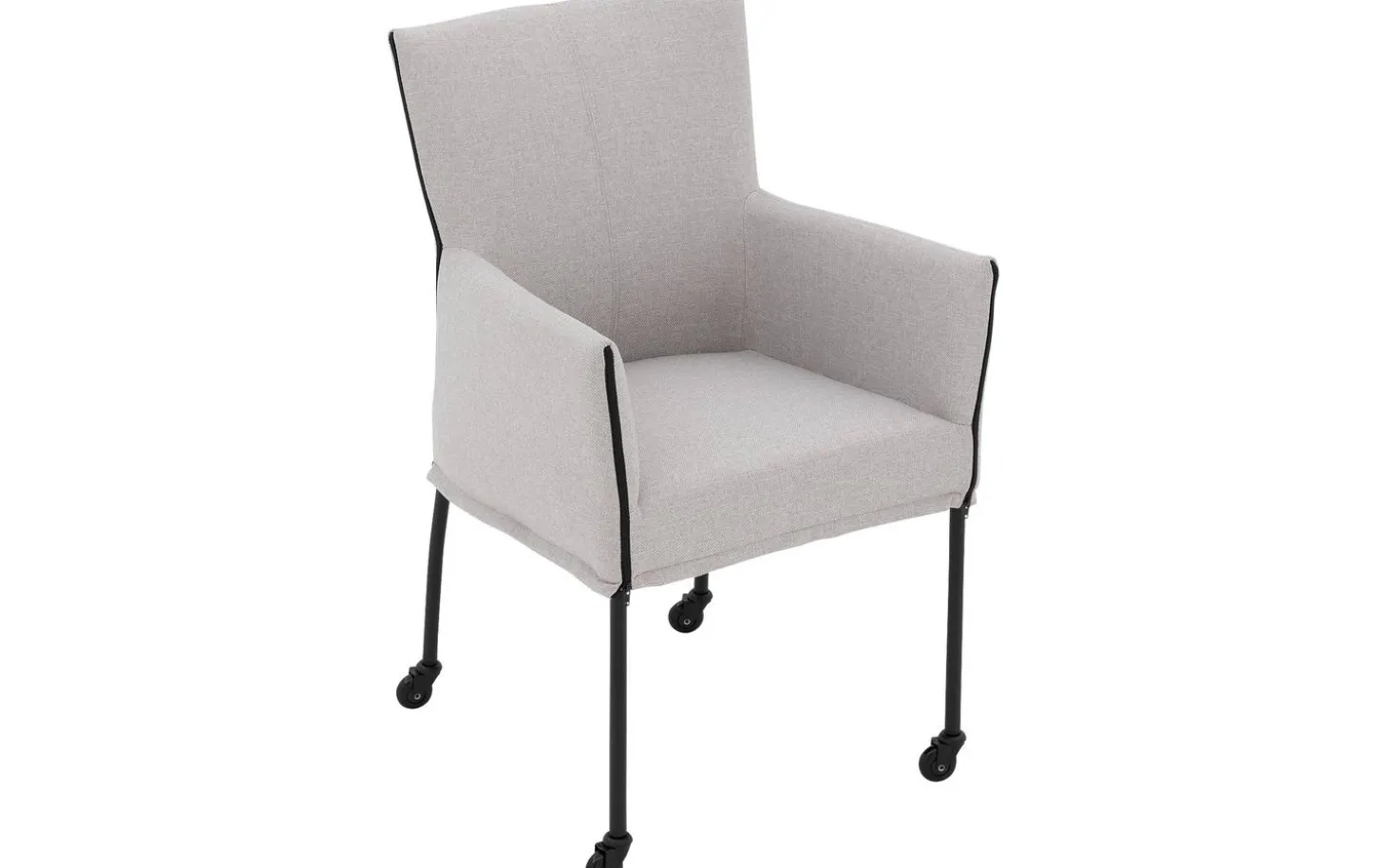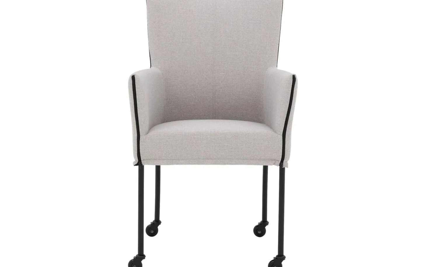 Grauer Esszimmerstuhl Funk mit Armlehne bringt modernes Design in Ihr Esszimmer. Dieser stilvolle Stuhl ist mit fein gewebtem Broadway-Stoff in Hellgrau bezogen, was für eine zeitlose Ausstrahlung sorgt. Dank der praktischen Skate-Rollen schieben Sie sich leicht an den Tisch und stehen nach dem Essen mühelos wieder auf. Die schwarze Pulverbeschichtung des Gestells verleiht diesem Stuhl einen klaren, zeitgemäßen Charakter.
