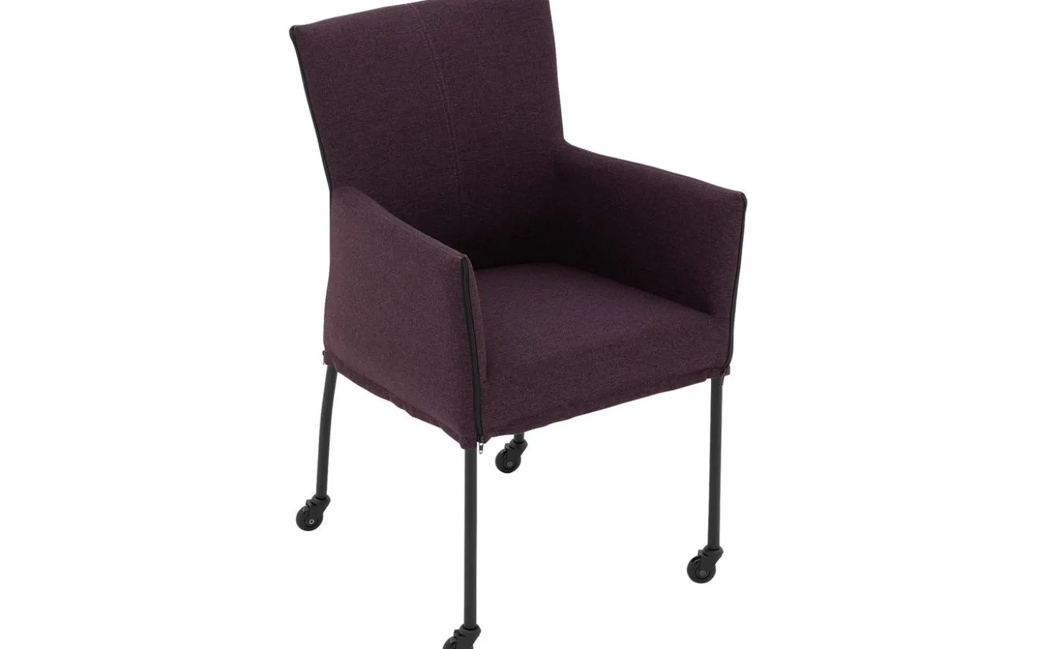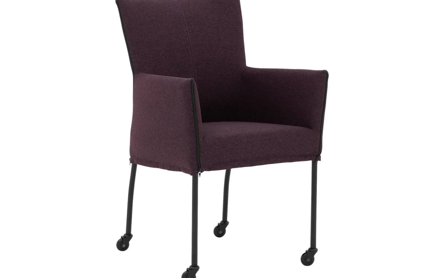 Betrachten Sie den Esszimmerstuhl Funk! Dieser rosafarbene Esszimmerstuhl mit Armlehne verbindet modernes Design mit praktischem Komfort. Der fein gewebte Broadway Aubergine-Bezug verleiht dem Stuhl eine warme Ausstrahlung und passt zu verschiedenen Einrichtungsstilen. Dank der praktischen schwarzen Skateboard-Rollen rücken Sie leicht an den Esstisch und stehen nach einem köstlichen Abendessen ohne Mühe wieder auf.