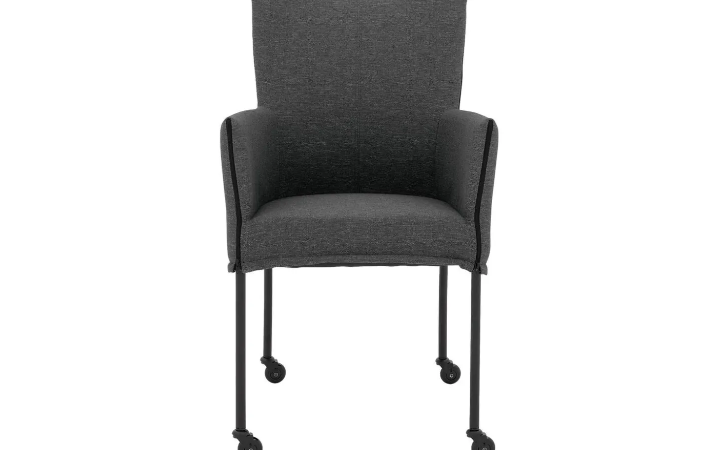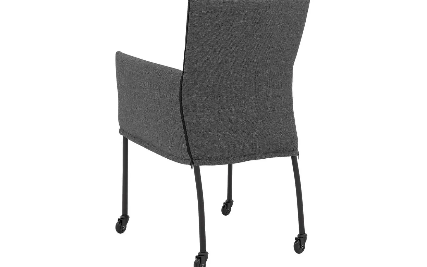 Entdecken Sie den grauen Esszimmerstuhl Funk mit Armlehne. Dieser stilvolle Stuhl kombiniert modernes Design mit praktischem Komfort. Der fein gewebte Broadway-Stoff in Dunkelgrau verleiht dem Stuhl eine zeitlose Ausstrahlung, während die handwerkliche Polsterung für ein luxuriöses Gefühl sorgt. Dank der praktischen Rollen können Sie leicht an den Esstisch heranrücken und nach dem Essen schnell wieder aufstehen.