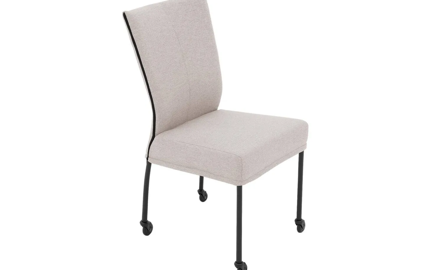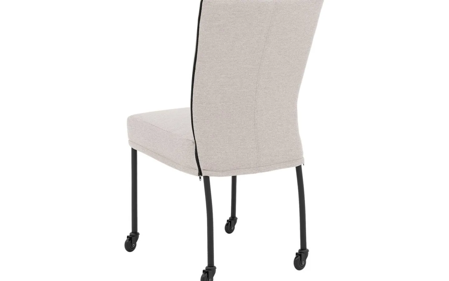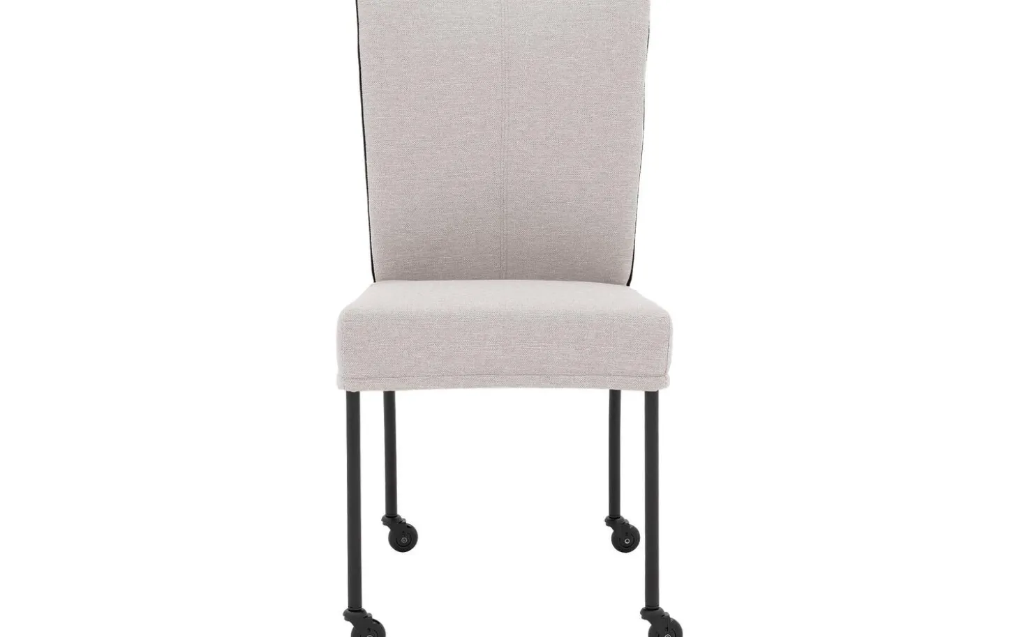 Betrachten Sie den Esszimmerstuhl Funk! Dieser graue Esszimmerstuhl ohne Armlehne verbindet modernes Design mit praktischem Komfort. Der fein gewebte Bezug in Hellgrau verleiht dem Stuhl eine frische und zeitlose Ausstrahlung, die zu verschiedenen Einrichtungsstilen passt. Dank der praktischen Rollen gleiten Sie mühelos an den Tisch und stehen nach dem Essen einfach auf – ideal für gemütliche Essen mit Familie und Freunden.