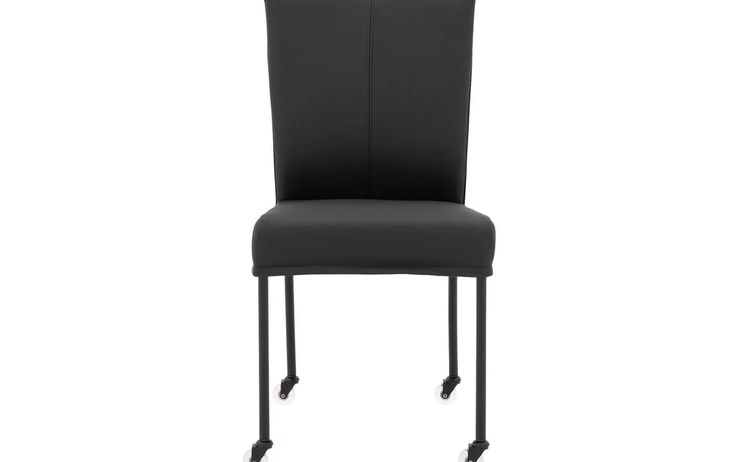 Entdecken Sie den Esszimmerstuhl Funk! Dieser schwarze Lederstuhl kombiniert modernes Design mit praktischem Komfort. Der luxuriöse dicke Master-Lederbezug verleiht dem Stuhl eine zeitlose Ausstrahlung, während die handwerkliche Polsterung für jahrelanges stilvolles Dinieren sorgt. Das schlanke Gestell mit schwarzer Pulverbeschichtung bietet Stabilität, und dank der praktischen Gleitrollen können Sie mühelos am Esstisch Platz nehmen.