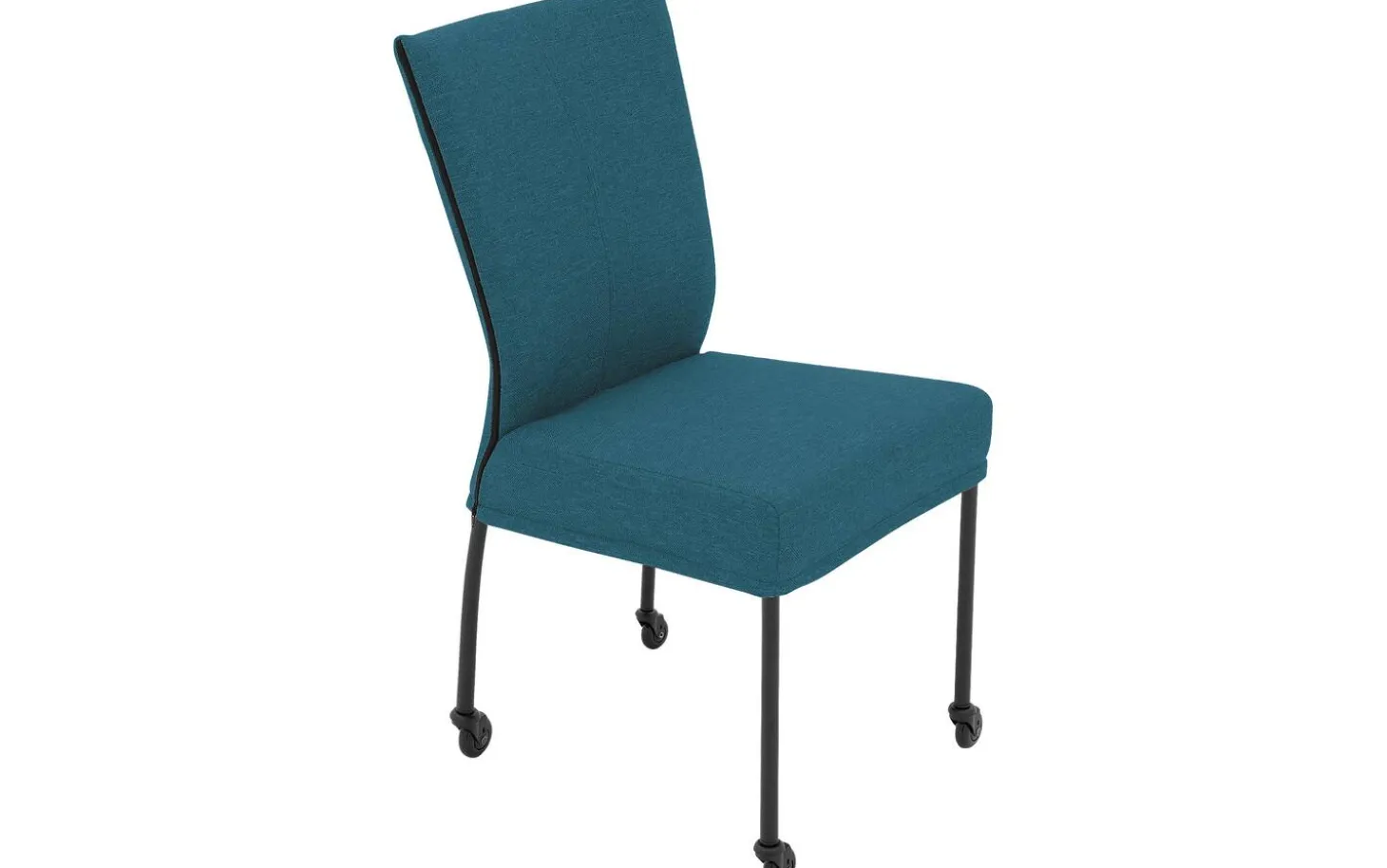 Dank der festen Polsterung hat der Stuhl einen klaren und modernen Look, der jahrelang schön bleibt. Die Kombination aus Petrolblau und schwarzem Rahmen macht diesen Esszimmerstuhl vielseitig und passend für verschiedene Einrichtungsstile, von modern bis industriell.