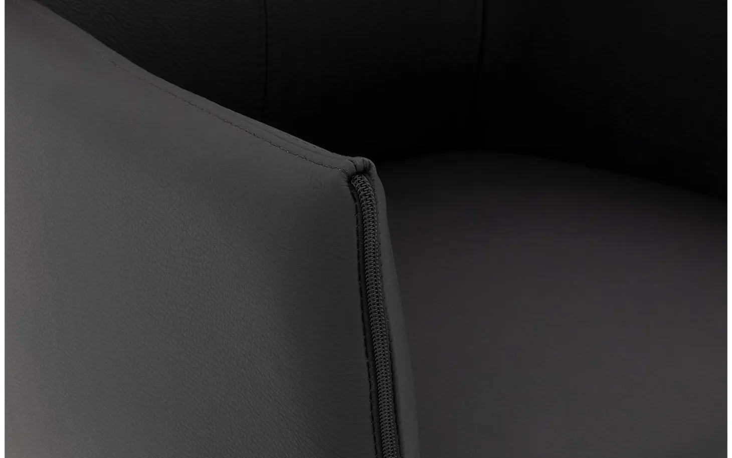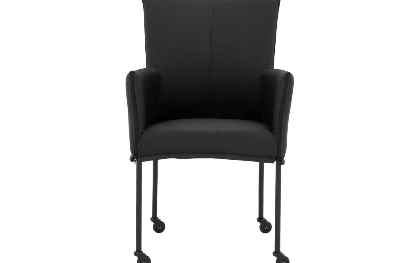 Der schwarze Esszimmerstuhl Funk mit Armlehne kombiniert modernes Design mit praktischem Komfort. Das geschmeidige und langlebige Masterleder verleiht dem Stuhl eine zeitlose Ausstrahlung, während die handwerkliche Polsterung für ein luxuriöses Gefühl sorgt. Dank der schwarzen Skate-Rollen lassen Sie sich leicht an den Esstisch rollen und stehen nach dem Essen schnell wieder auf. Genießen Sie lange Mahlzeiten auf diesem stilvollen Esszimmerstuhl.