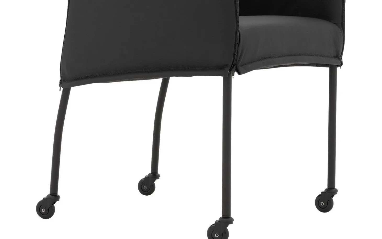 Mit seinen klaren Linien und dem langlebigen dicken Masterleder hat dieser Stuhl eine moderne Ausstrahlung. Das Leder ist durchgefärbt und hat eine schützende Lackschicht, die es vor Sonnenlicht, Feuchtigkeit und Essensresten schützt. Das schwarze Gestell mit Pulverbeschichtung bietet ein robustes und stilvolles Fundament, komplett mit praktischen Rollen.