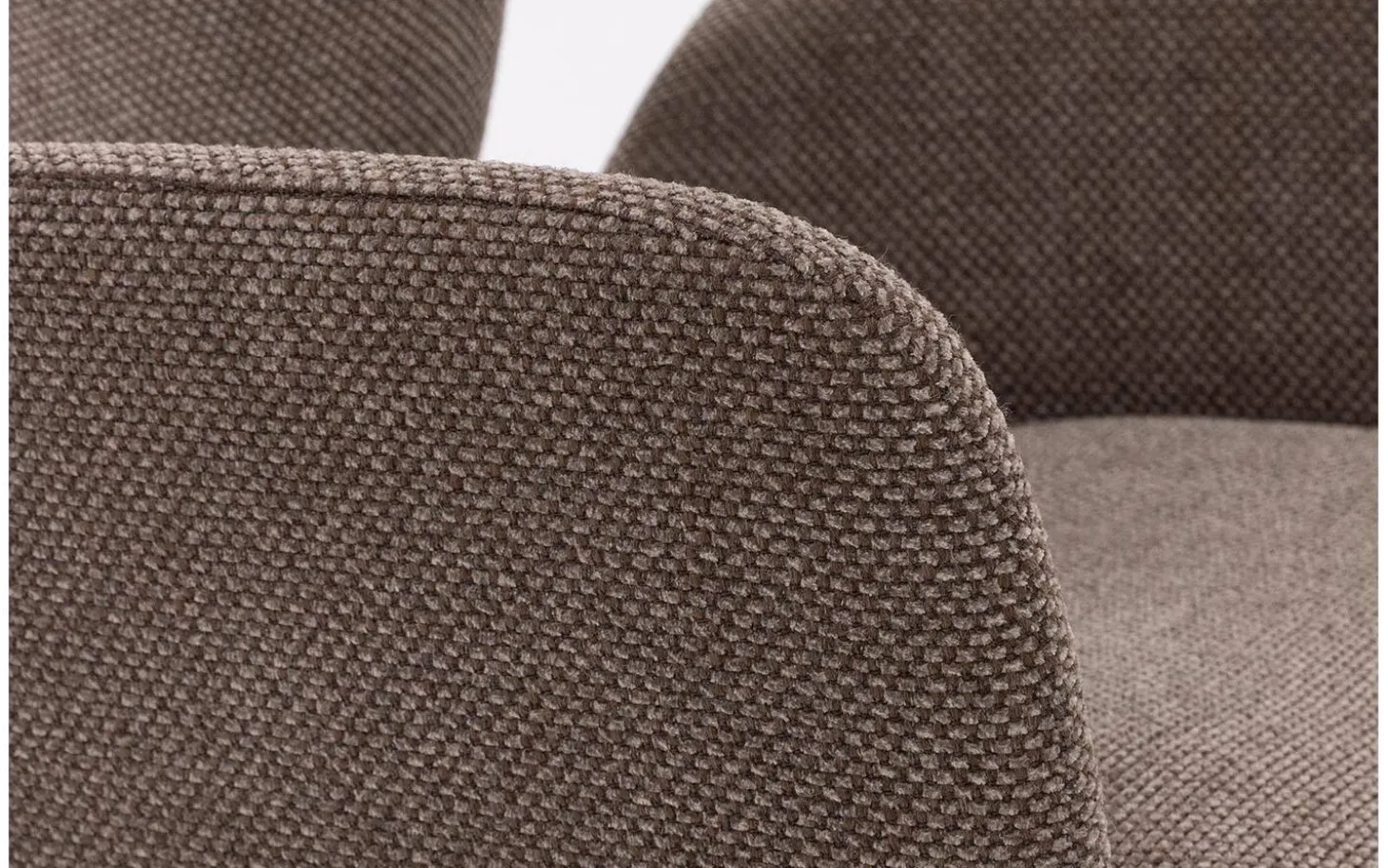 Der grobgewebte braune Stoff verleiht dem Esszimmerstuhl Hera eine reiche Textur, die Wärme und Tiefe in Ihr Esszimmer bringt. Dieser Qualitätsstoff ist für sehr intensive tägliche Nutzung geeignet, sodass Sie jahrelang Freude an Ihrem Kauf haben werden.