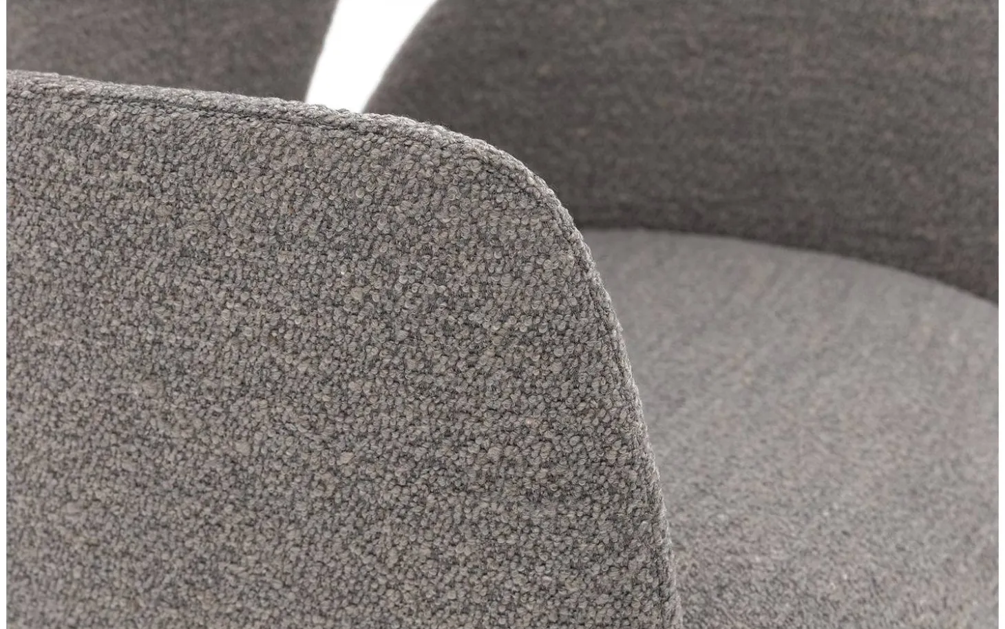 Grauer Esszimmerstuhl Hera mit Armlehne bietet zeitgemäßes Design für Ihren Essbereich. Dieser mit Stoff bezogene Esszimmerstuhl beeindruckt durch sein schlichtes, minimalistisches Design und trendigen Bouclé-Stoff. Der herrlich weiche Teddystoff verleiht nicht nur ein luxuriöses Erscheinungsbild, sondern sorgt auch für eine warme und stimmungsvolle Ergänzung an Ihrem Esstisch. Das schlanke Gestell mit schwarzer Pulverbeschichtung bildet einen schönen Kontrast zum hellgrauen Bezug.