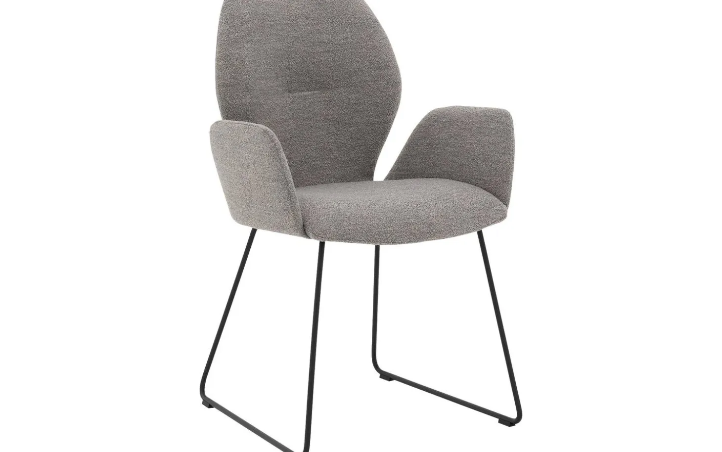 Der graue Esszimmerstuhl Hera mit Armlehne kombiniert zeitgemäßen Komfort mit minimalistischem Design. Der weiche Bouclé-Stoff, auch bekannt als Teddystoff, verleiht diesem Stuhl eine luxuriöse Ausstrahlung, während das schlanke schwarze Gestell für eine moderne Basis sorgt. Perfekt für alle, die einen trendigen grauen Esszimmerstuhl suchen, der Stil und Komfort in einem zeitgemäßen Look vereint.