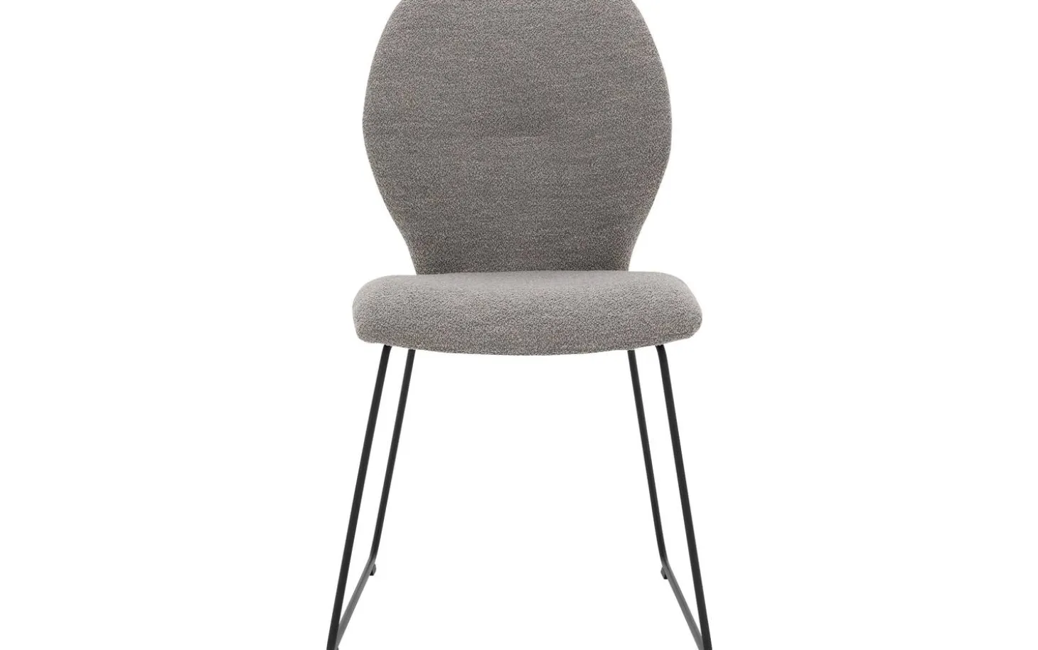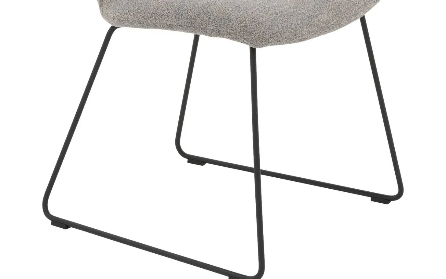 Der Esszimmerstuhl Hera hat eine schlanke, moderne Ausstrahlung durch das klare Gestell mit schwarzer Pulverbeschichtung, die vor Beschädigungen schützt. Der weiche, hellgraue Bouclé-Stoff (auch bekannt als Teddystoff) verleiht diesem Esszimmerstuhl eine trendige und luxuriöse Ausstrahlung, die wunderbar zu verschiedenen Einrichtungsstilen passt.