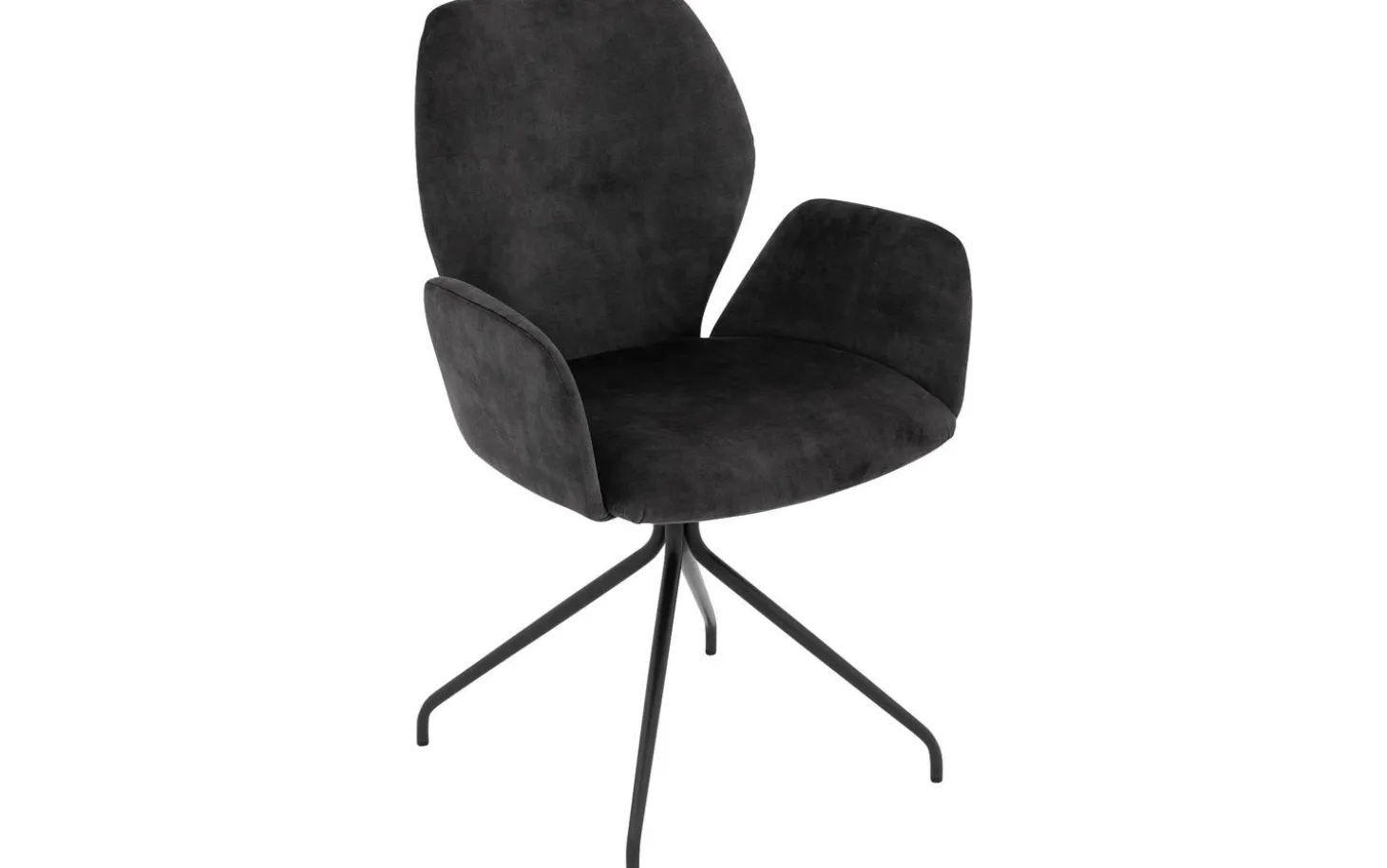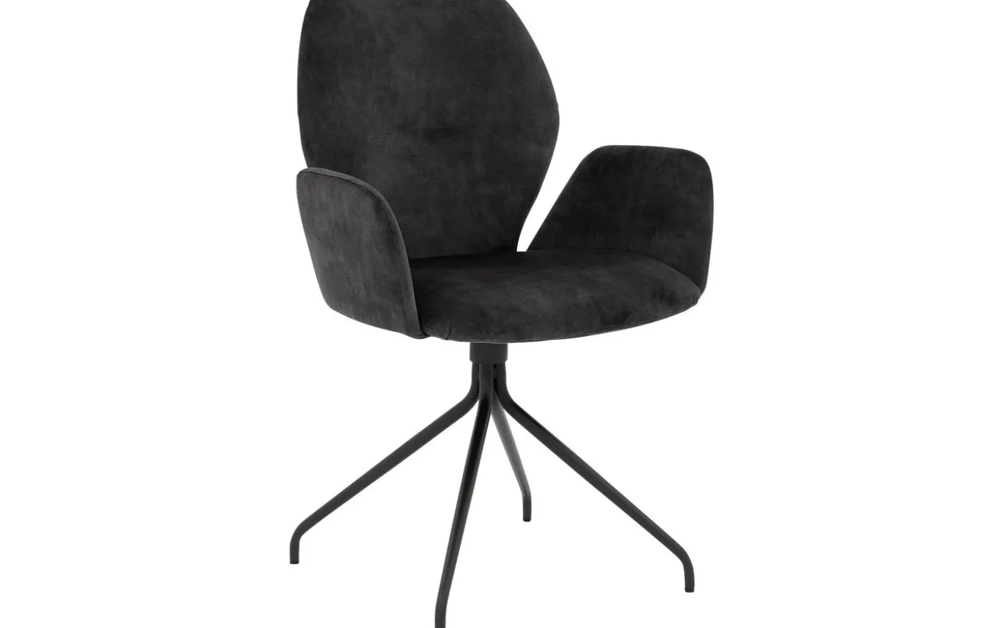 Der Velvet-Anthrazit-Bezug verleiht diesem Esszimmerstuhl eine luxuriöse Ausstrahlung und fühlt sich wunderbar weich an. Die Sitzhöhe von 51 cm in Kombination mit der Armlehnenhöhe von 66 cm sorgt für eine komfortable Sitzposition, bei der Sie leicht an den Esstisch heranrücken können.