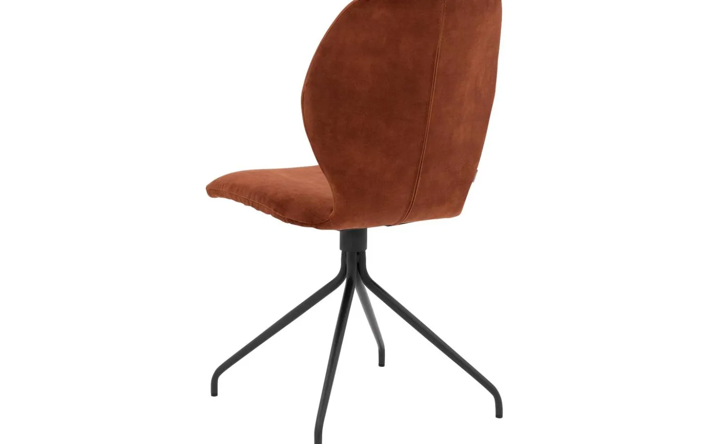 Die kupferfarbene Samtverarbeitung hat eine weiche, luxuriöse Ausstrahlung mit einem leichten Glanz, der wunderschön mit dem Licht in Ihrem Esszimmer spielt. Ohne Armlehnen ist dieser Stuhl nicht nur klar gestaltet, sondern auch praktisch für kleinere Räume oder um mehr Stühle an den Tisch zu stellen bei einem gemütlichen Abendessen.